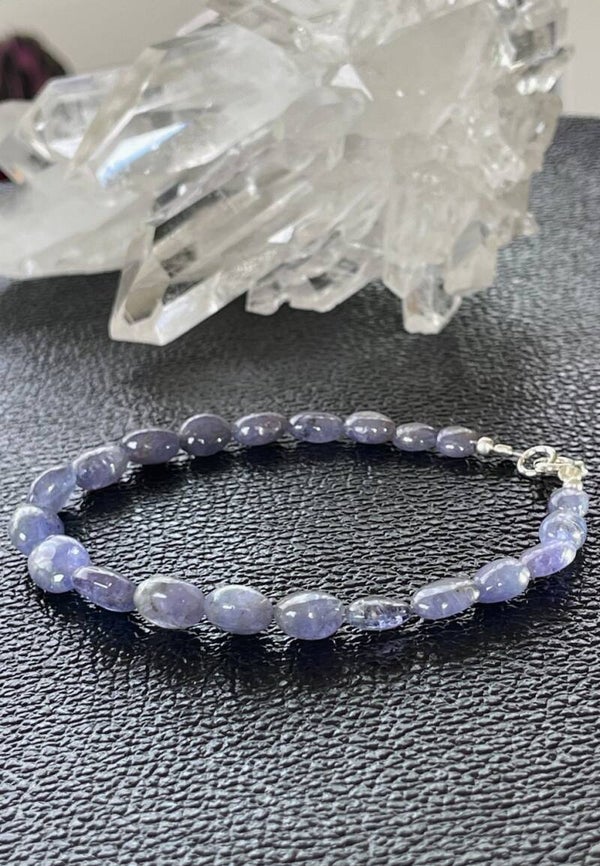 Armband met Ioliet edelstenen, cabochon kralen met zilveren sluiting (grote armband 21 cm)