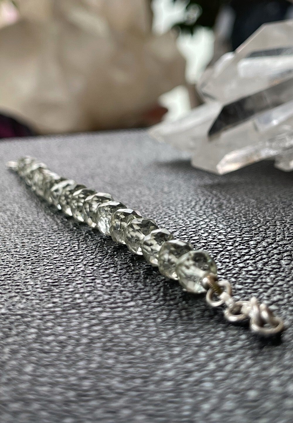 Prasioliet maakt een brug tussen de zuiverende lichtenergie van boven en de voedende energie uit de aarde, tussen de bovenste en onderste chakra's en tussen het hart en de ziel. De zachte energie van deze steen brengt hierdoor balans en aarding en helpt om je te laten leiden door je hart en je ziel. Hij zet negatieve energie om in positieve energie.