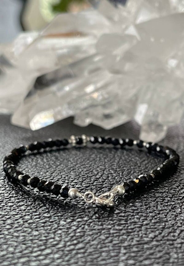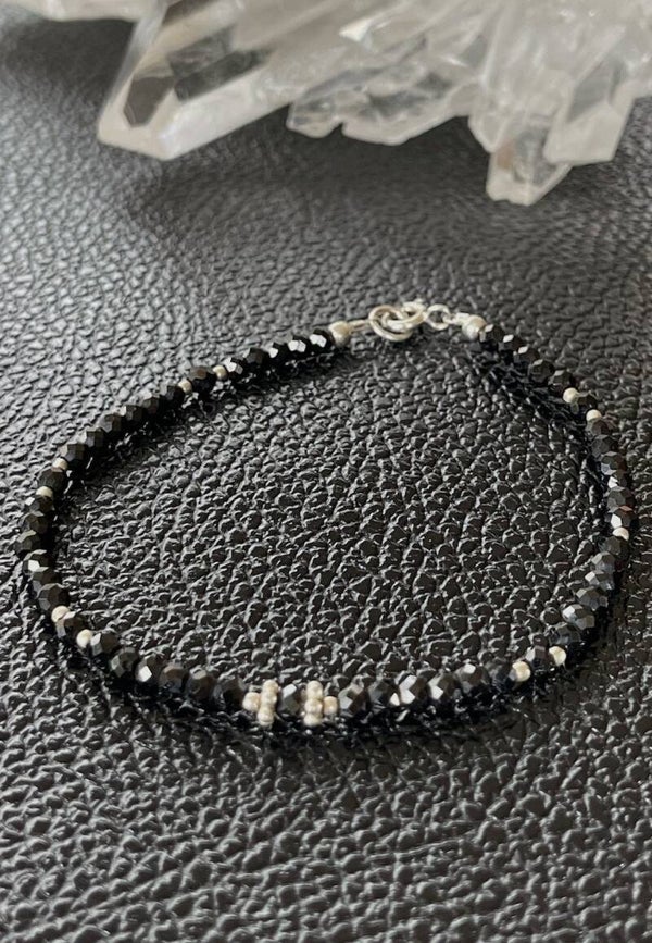 Armband met Spinel edelstenen, facet geslepen kralen met zilveren kralen ertussen en met zilveren sluiting