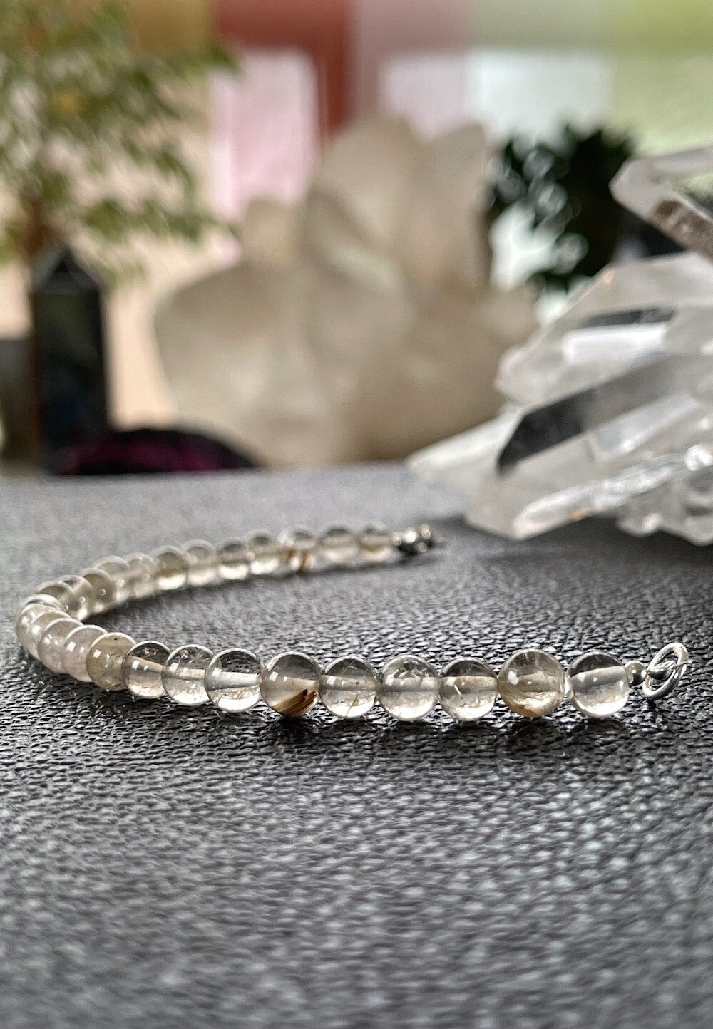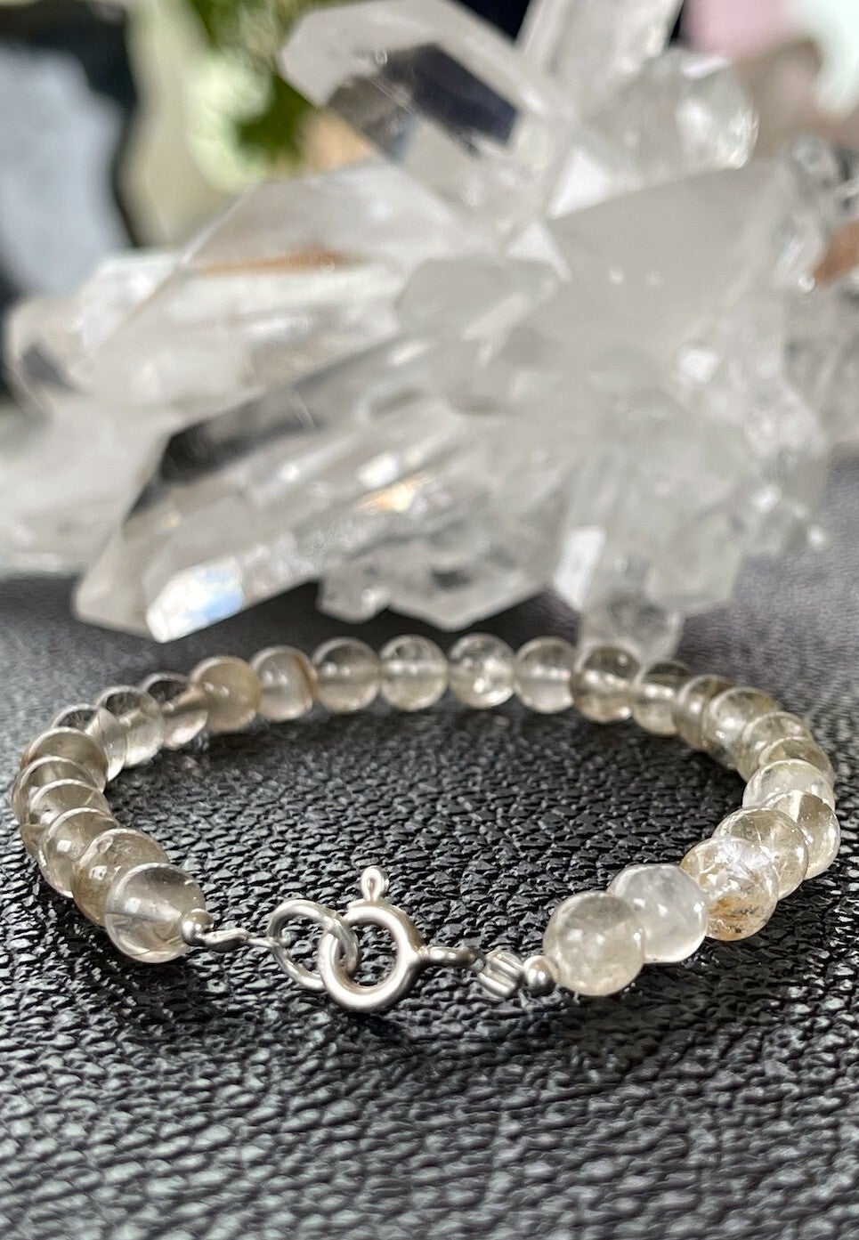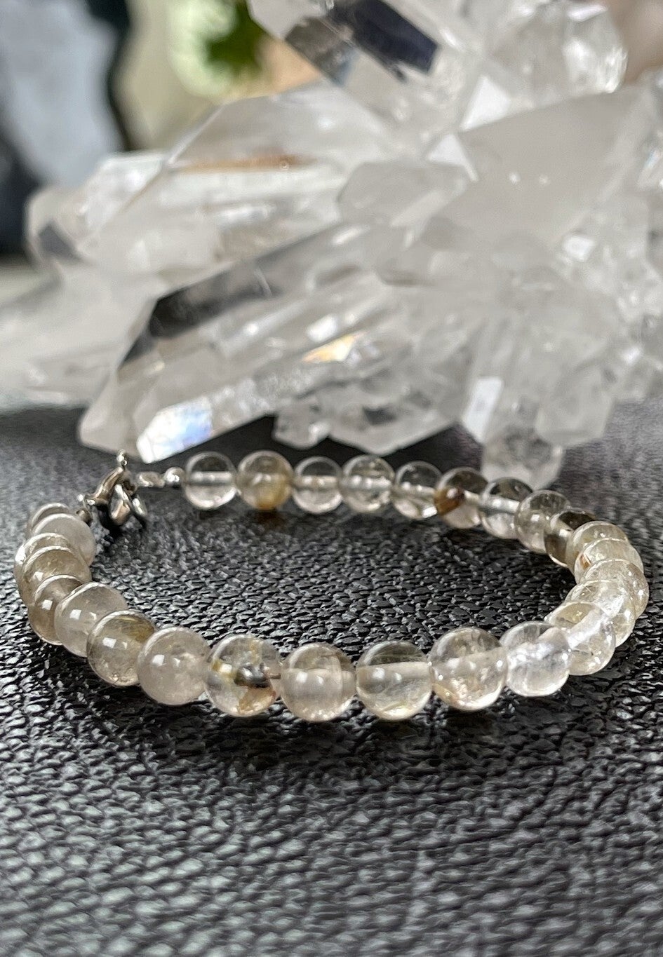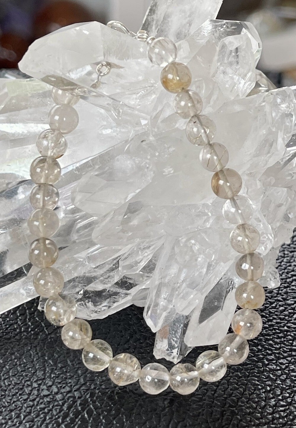 Gouden Rutielkwarts armband met ronde cabochon kralen 6,7mm