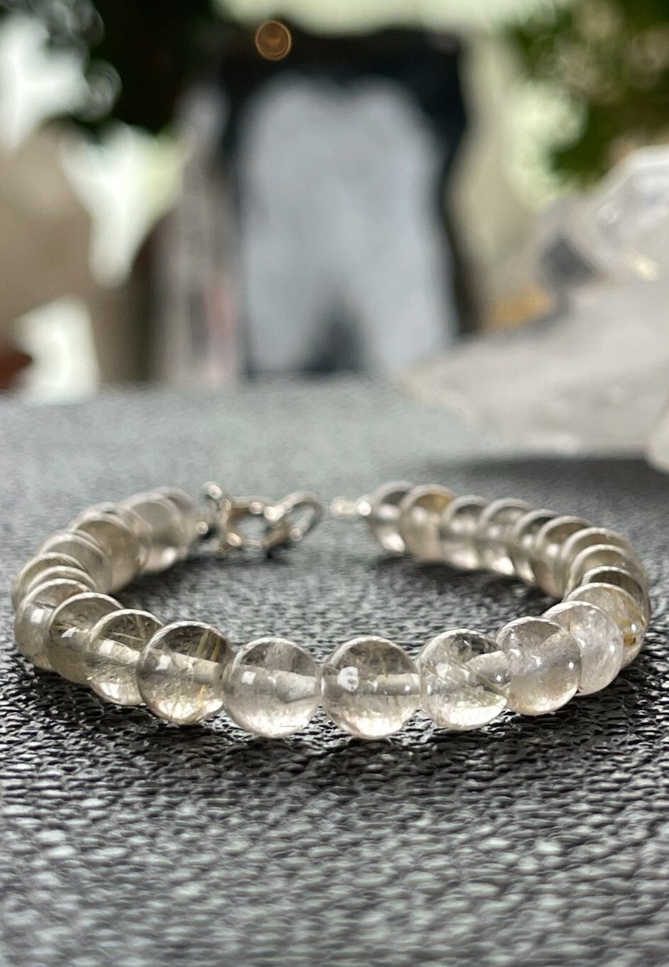Armband met Gouden Rutielkwarts edelstenen, ronde cabochon kralen met zilveren sluiting