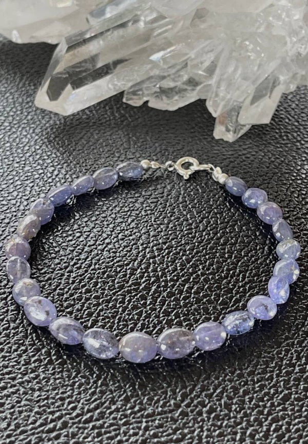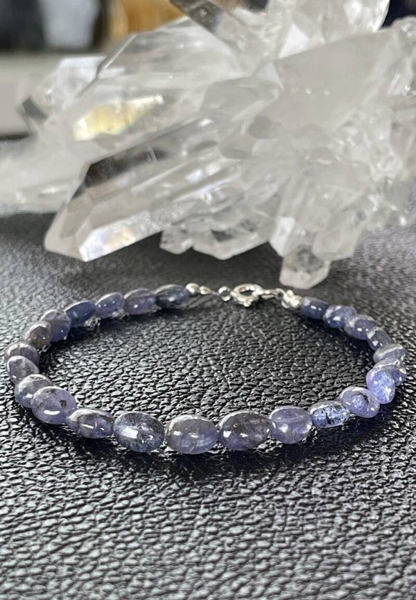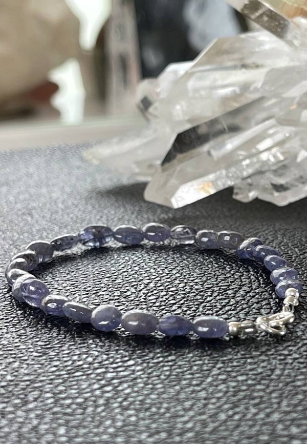 Armband met Ioliet edelstenen, cabochon kralen met zilveren sluiting