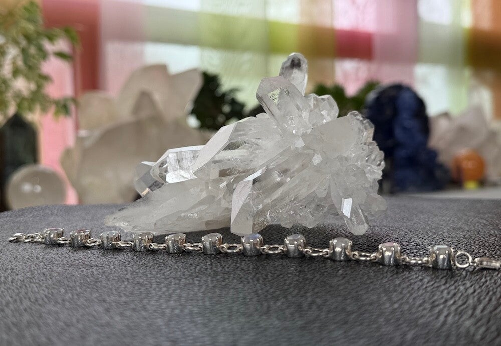 Zilveren armband met Regenboog Maansteen edelstenen ovaal facet geslepen, verstelbaar naar kortere lengte
