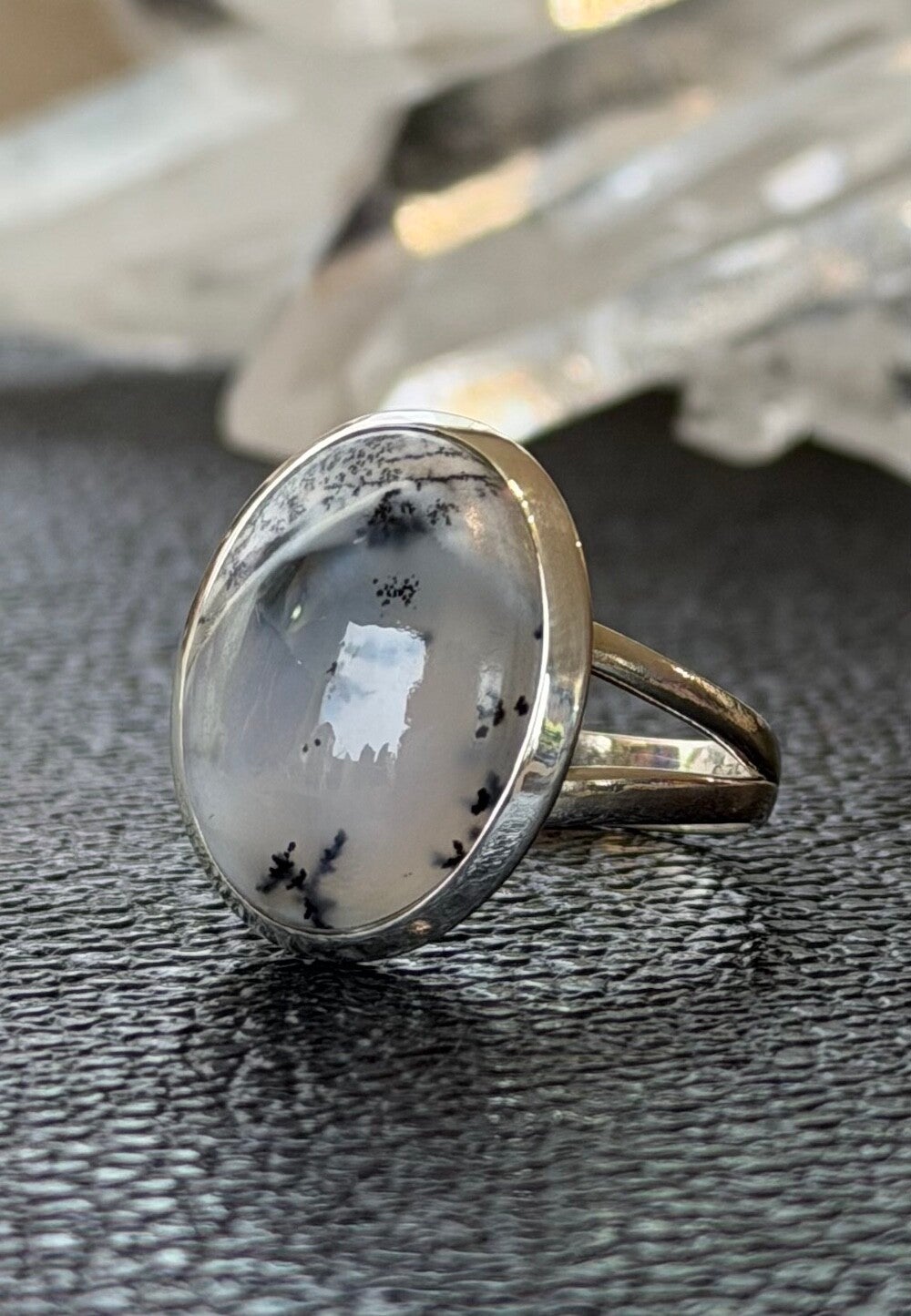 Dendriet Agaat ring cabochon ovaal , maat 20