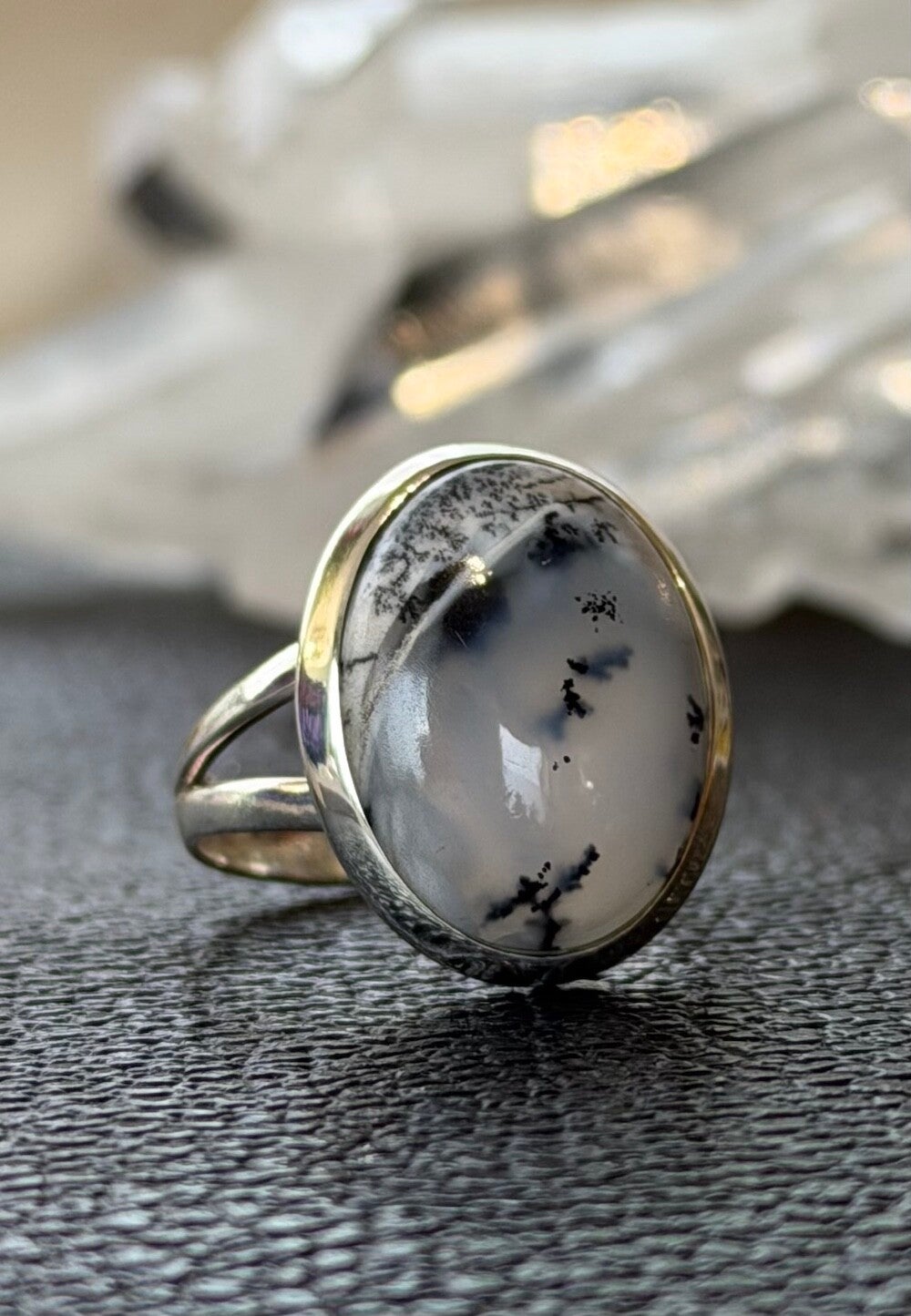 Zilveren ring met Dendriet Agaat edelsteen cabochon ovaal