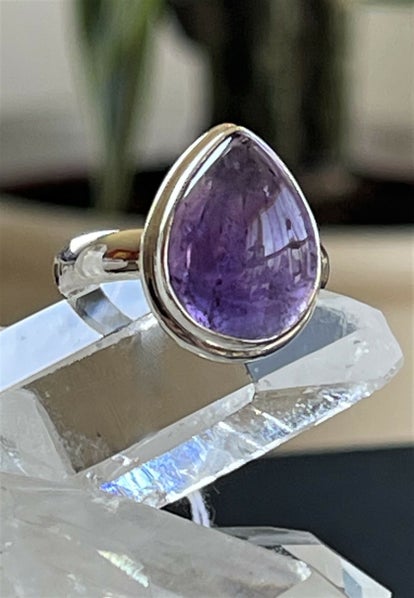 Zilveren ring met Amethist edelsteen cabochon druppel