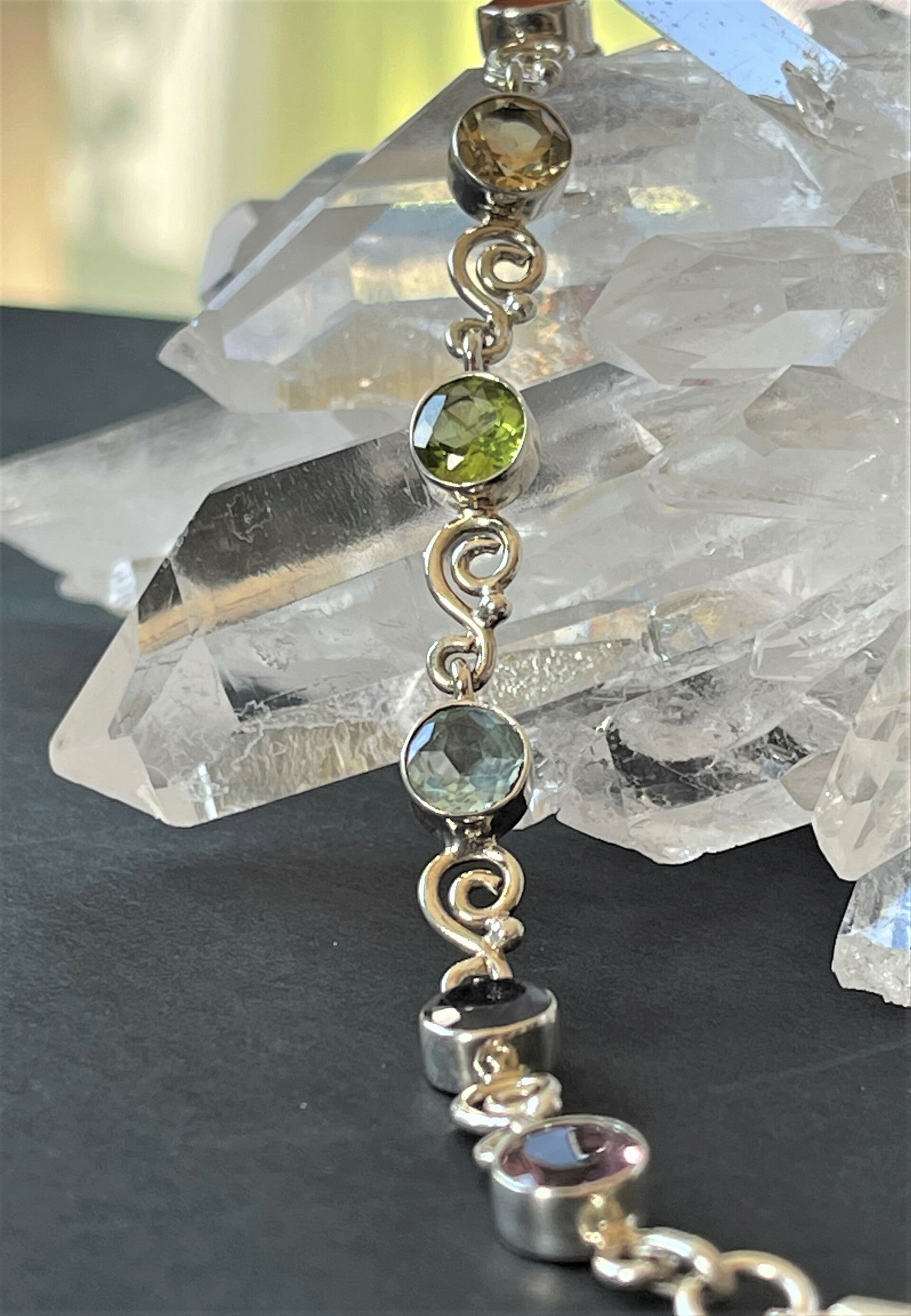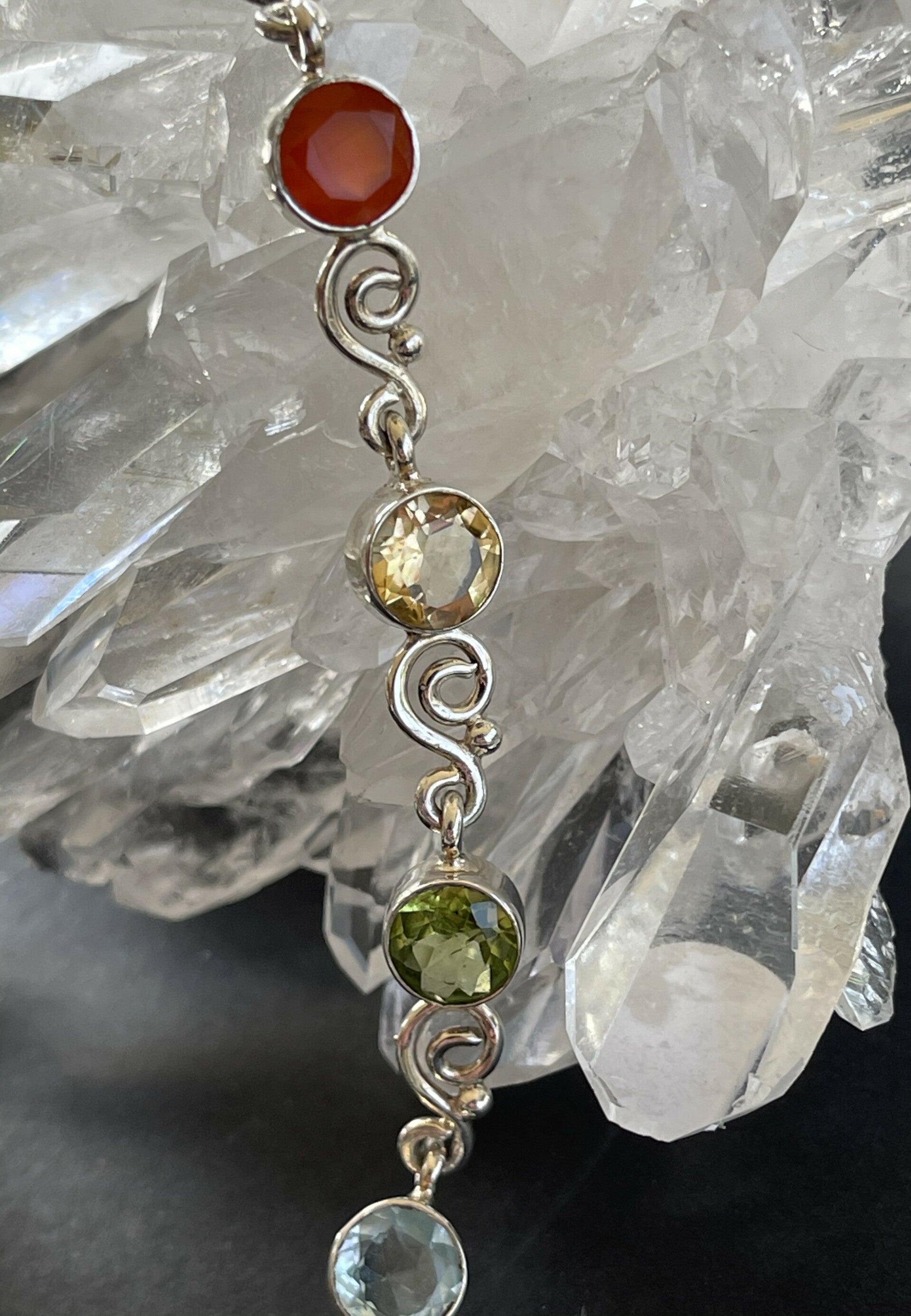 Zilveren armband met Amethyst Granaat Carneool Gouden Topaas Peridoot Aquamarijn Ioliet Amethist edelstenen rond facet geslepen, verstelbaar naar kortere lengte
