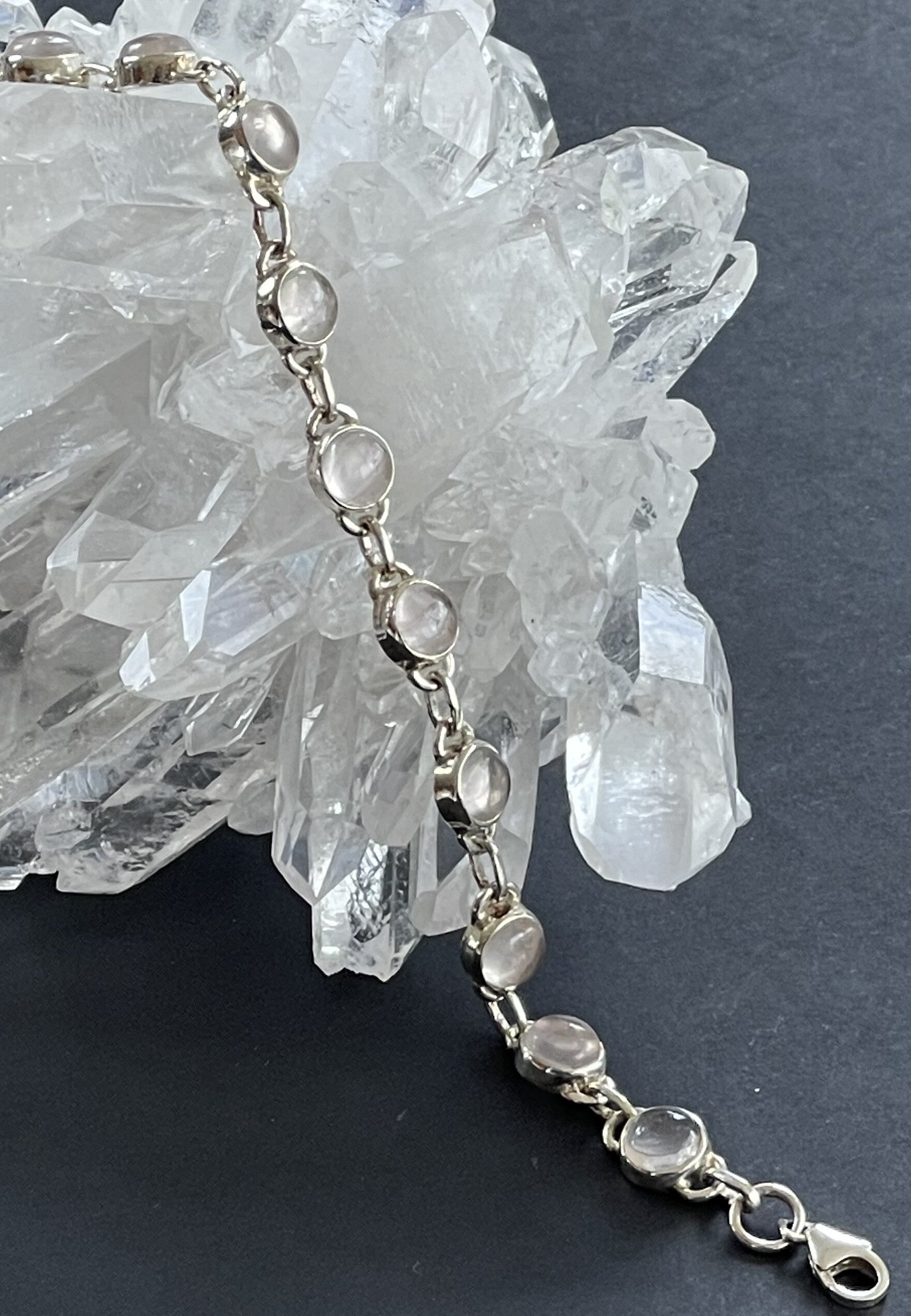 Zilveren armband met Maansteen edelsteen rond cabochon, verstelbaar naar kortere lengte