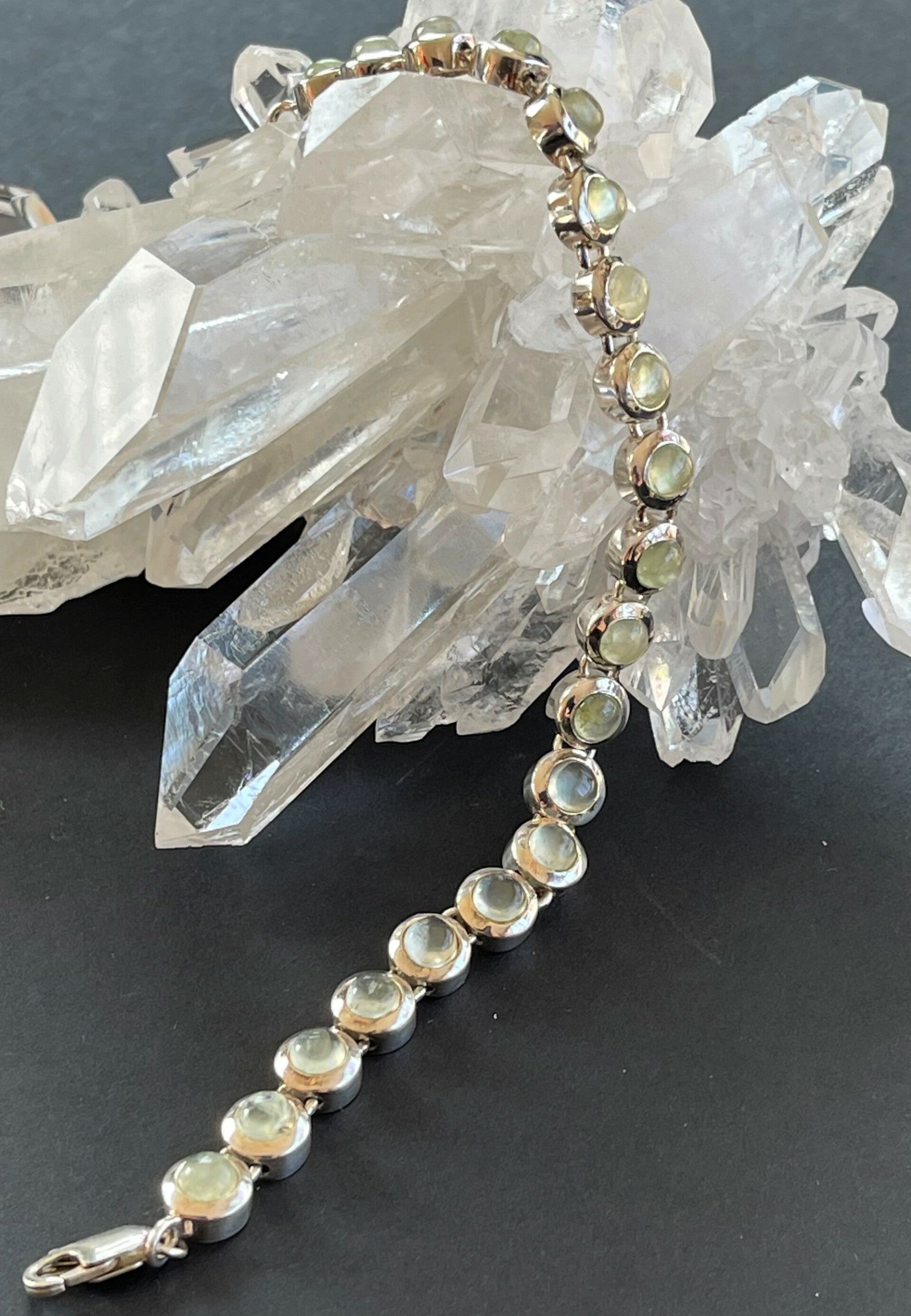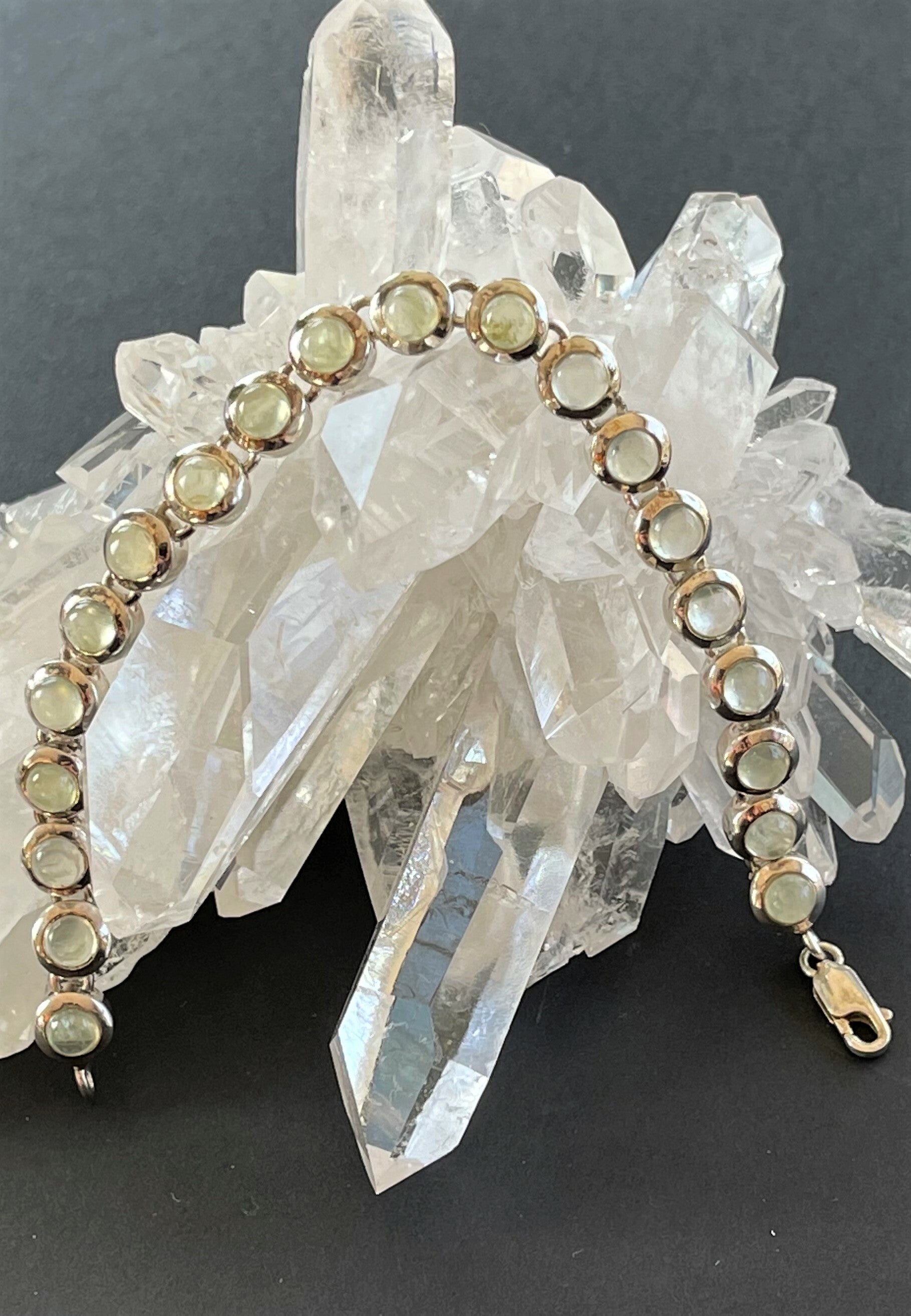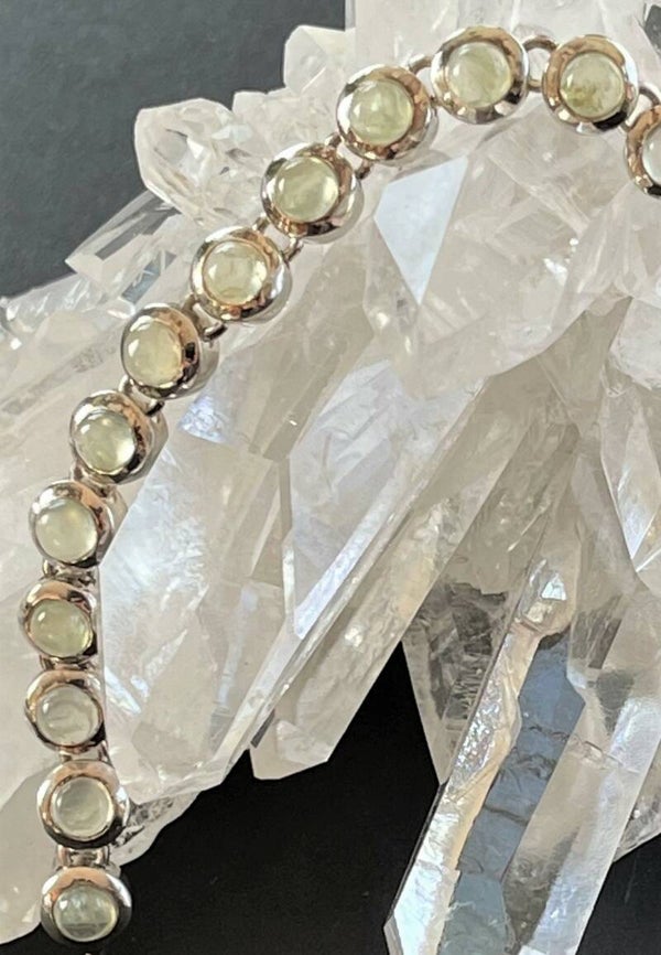 Zilveren armband met Prehniet edelstenen rond cabochon