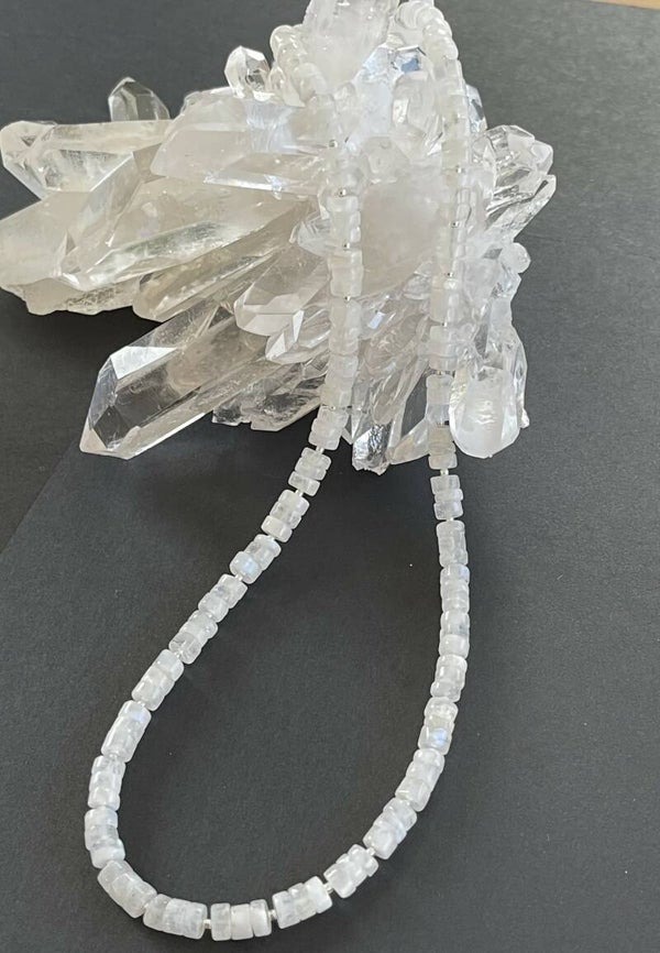 Regenboog Maansteen wordt ook wel Witte Labradoriet genoemd vanwege de mysterieuze glans.