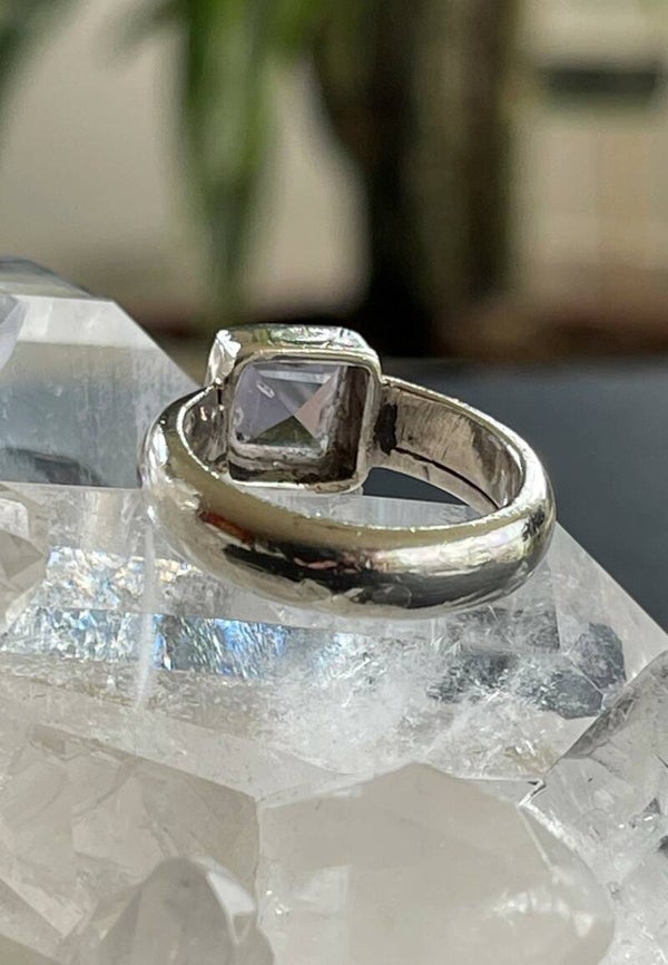 Zilveren ring met Amethist edelsteen facet geslepen vierkant