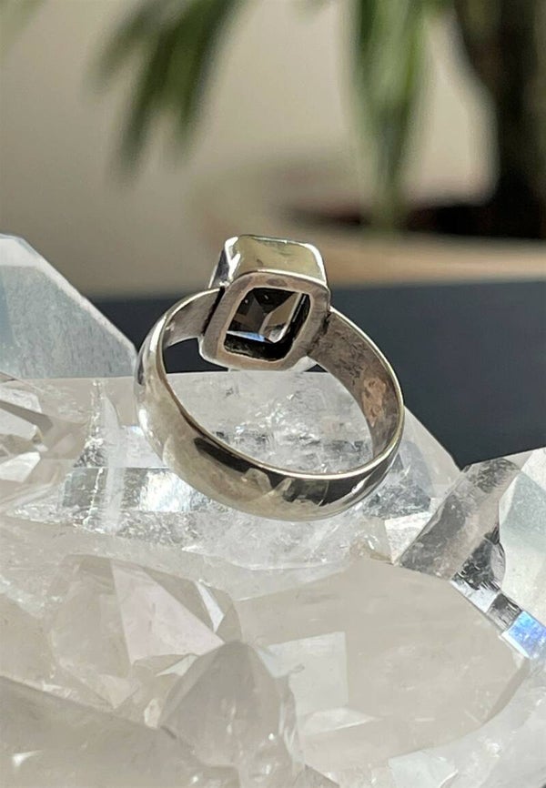 Zilveren ring met Rookkwarts edelsteen facet geslepen rechthoekig