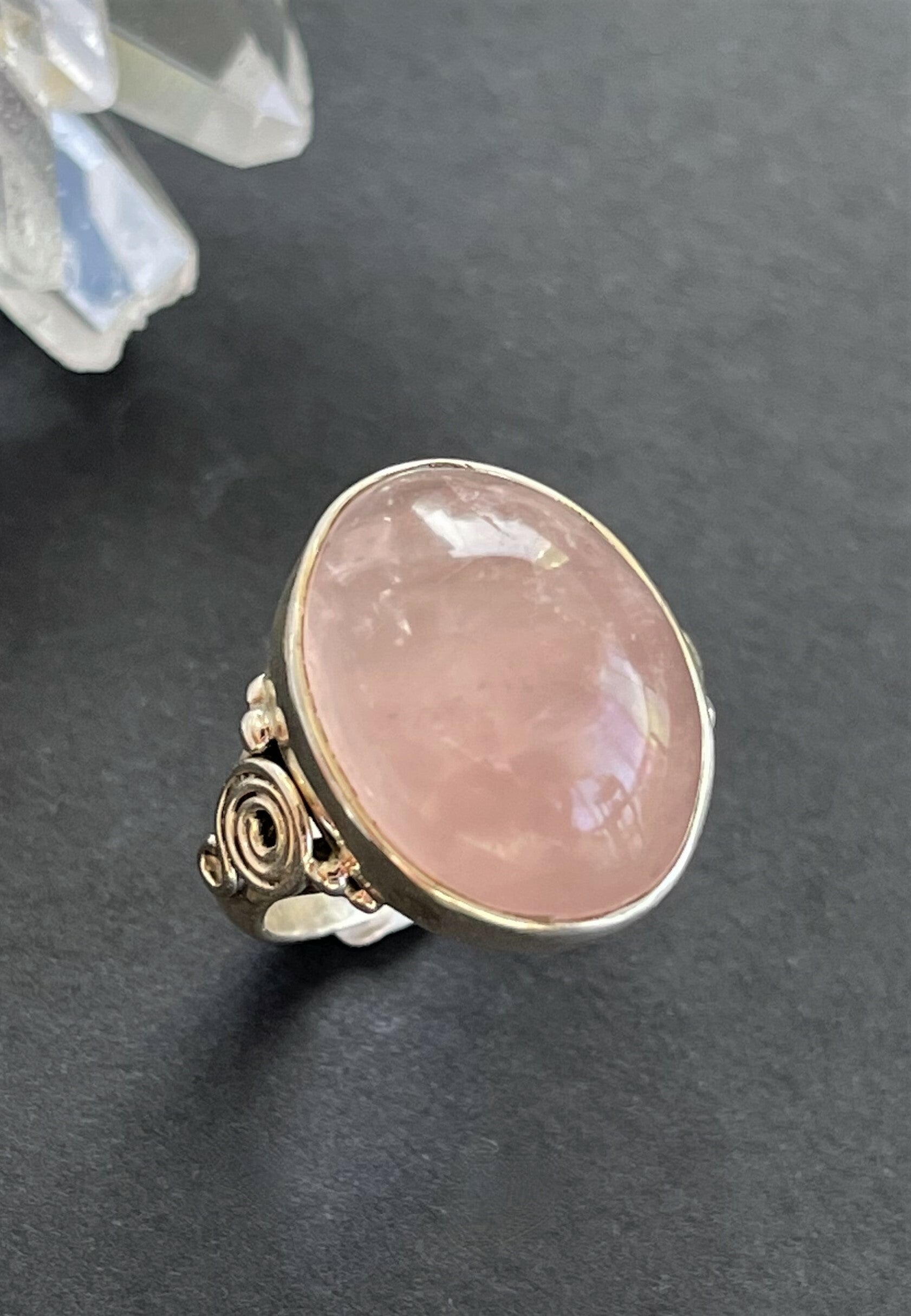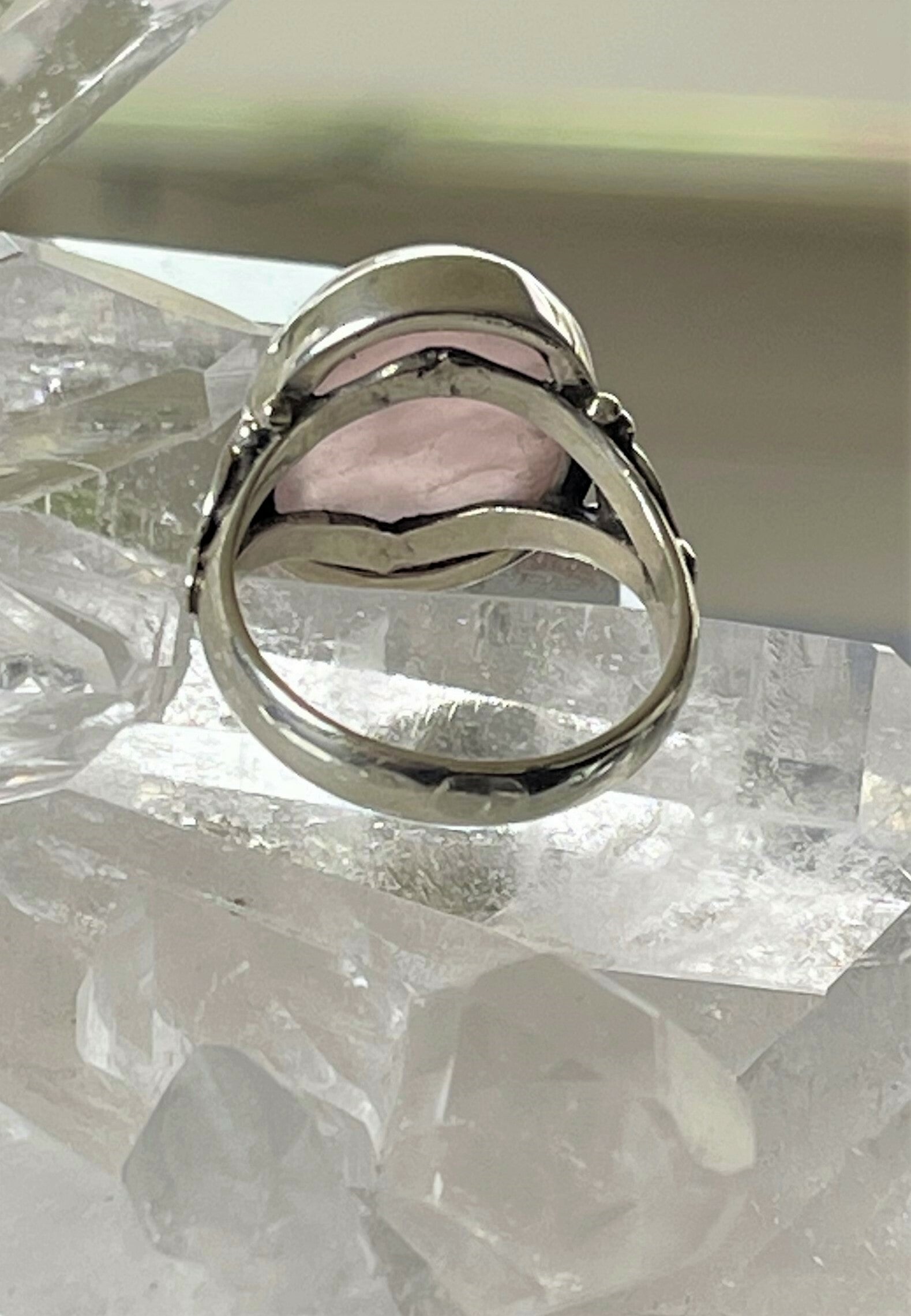 Zilveren ring met Rozenkwarts edelsteen cabochon ovaal