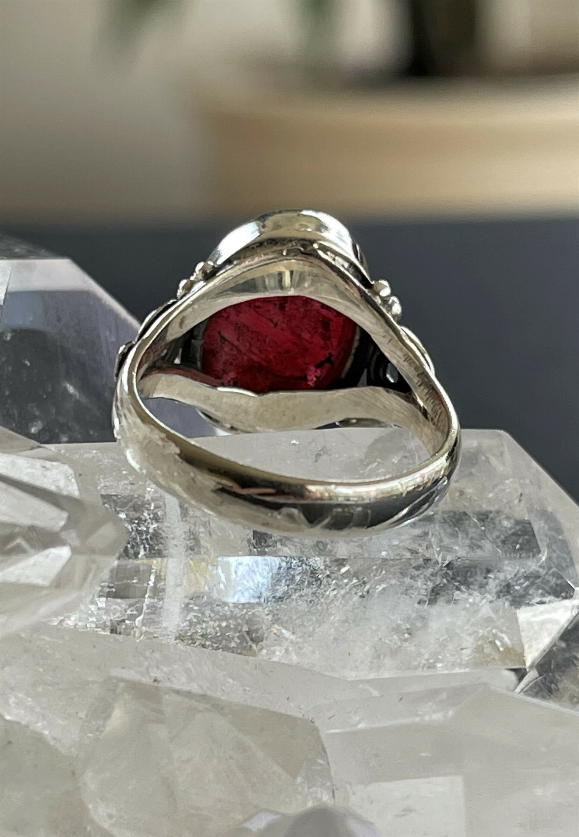 Zilveren ring met Granaat edelsteen cabochon ovaal