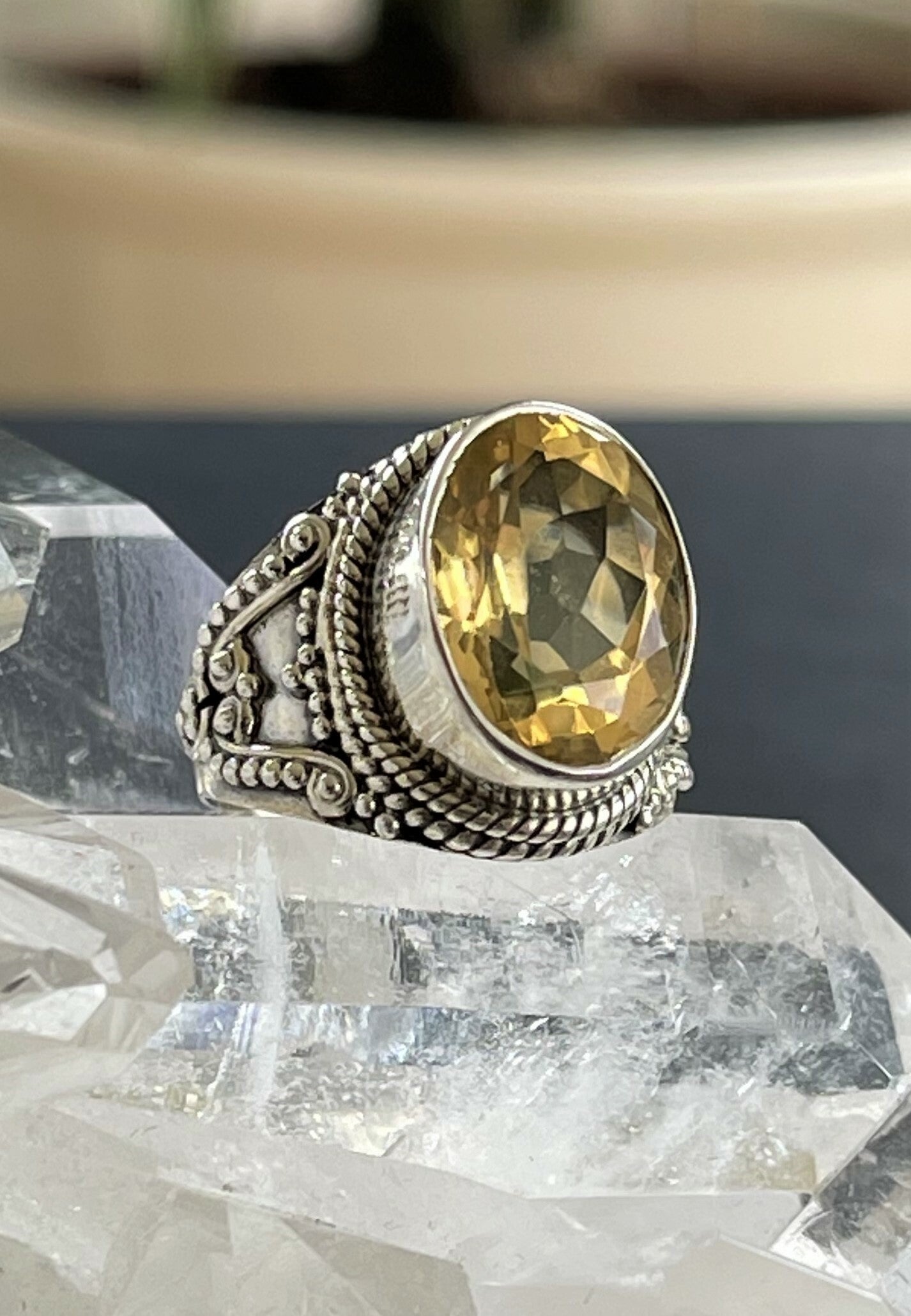 Zilveren ring met Citrien edelsteen facet geslepen ovaal met zilver bewerkt