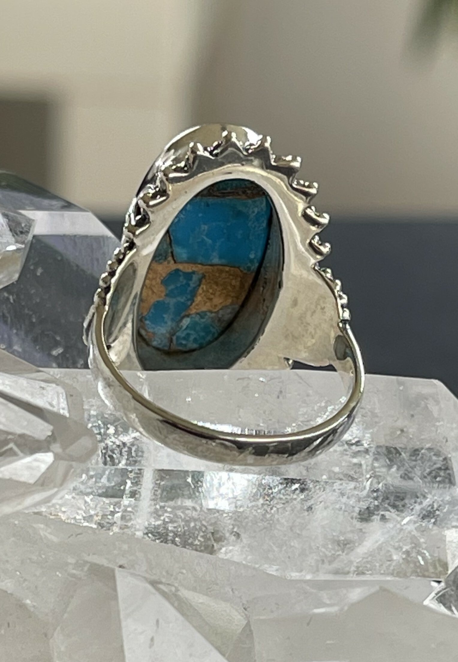 Koper Turkoois ring cabochon ovaal, maat 17,5