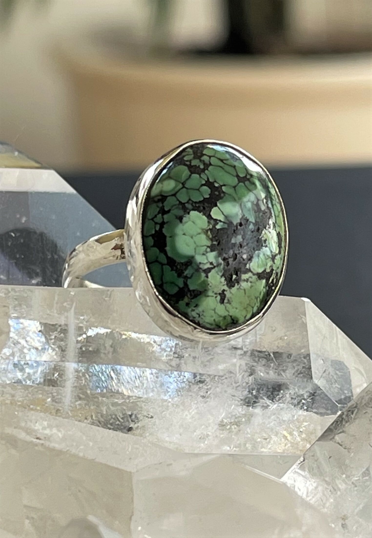 Zilveren ring met Turkoois edelsteen uit Tibet cabochon ovaal