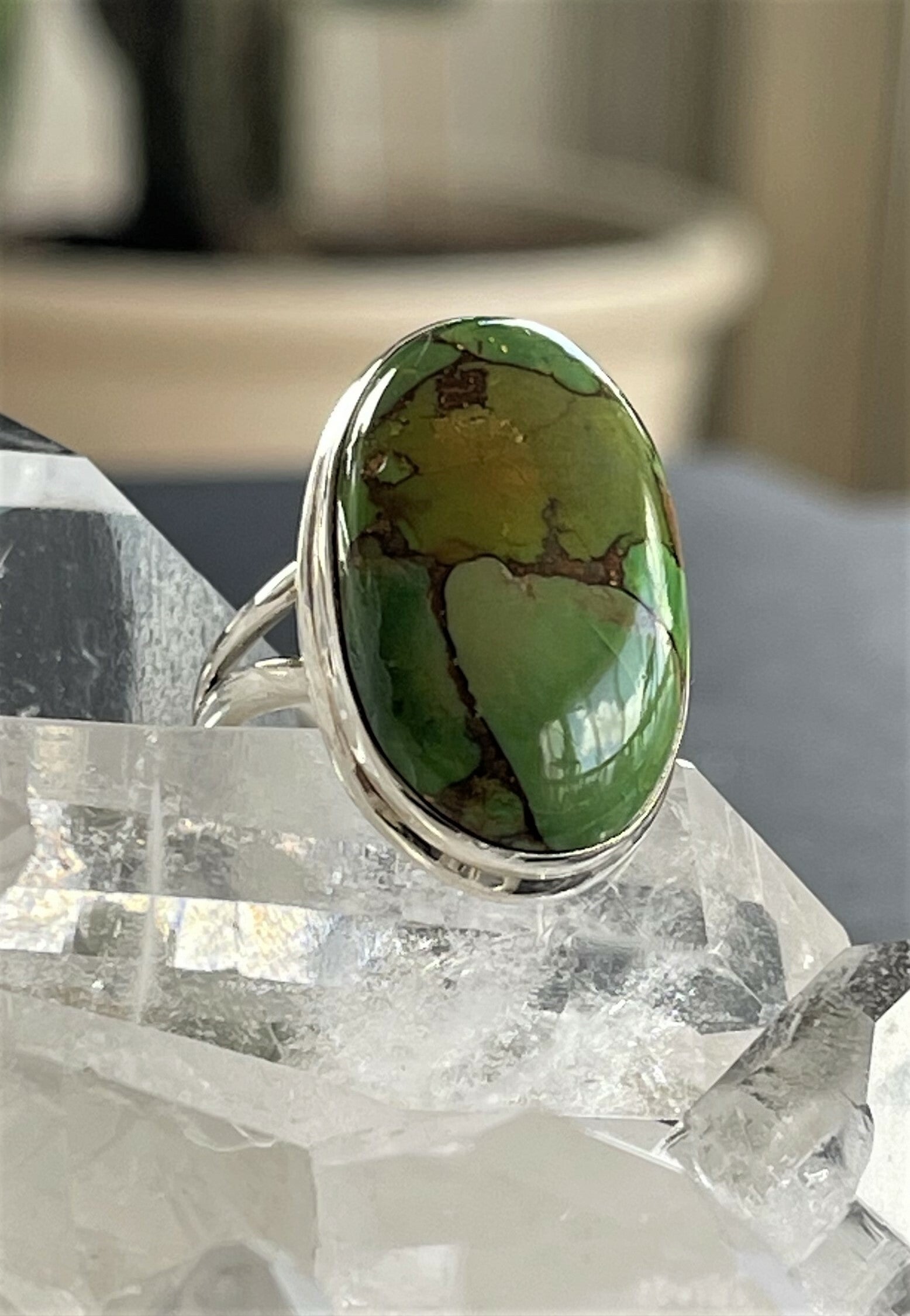 Zilveren ring met groene Koper Turkoois edelsteen cabochon ovaal