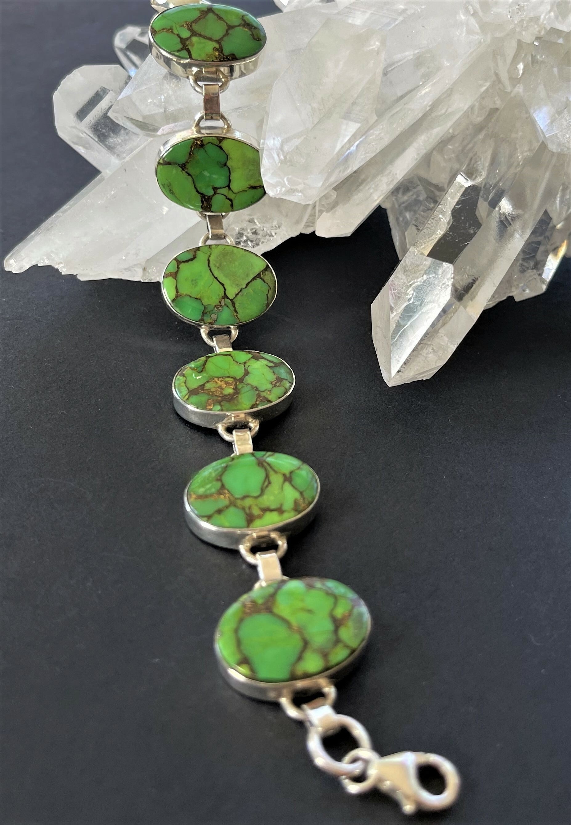 Zilveren armband met groene Koper Turkoois edelstenen cabochon ovaal, verstelbaar naar kortere lengte