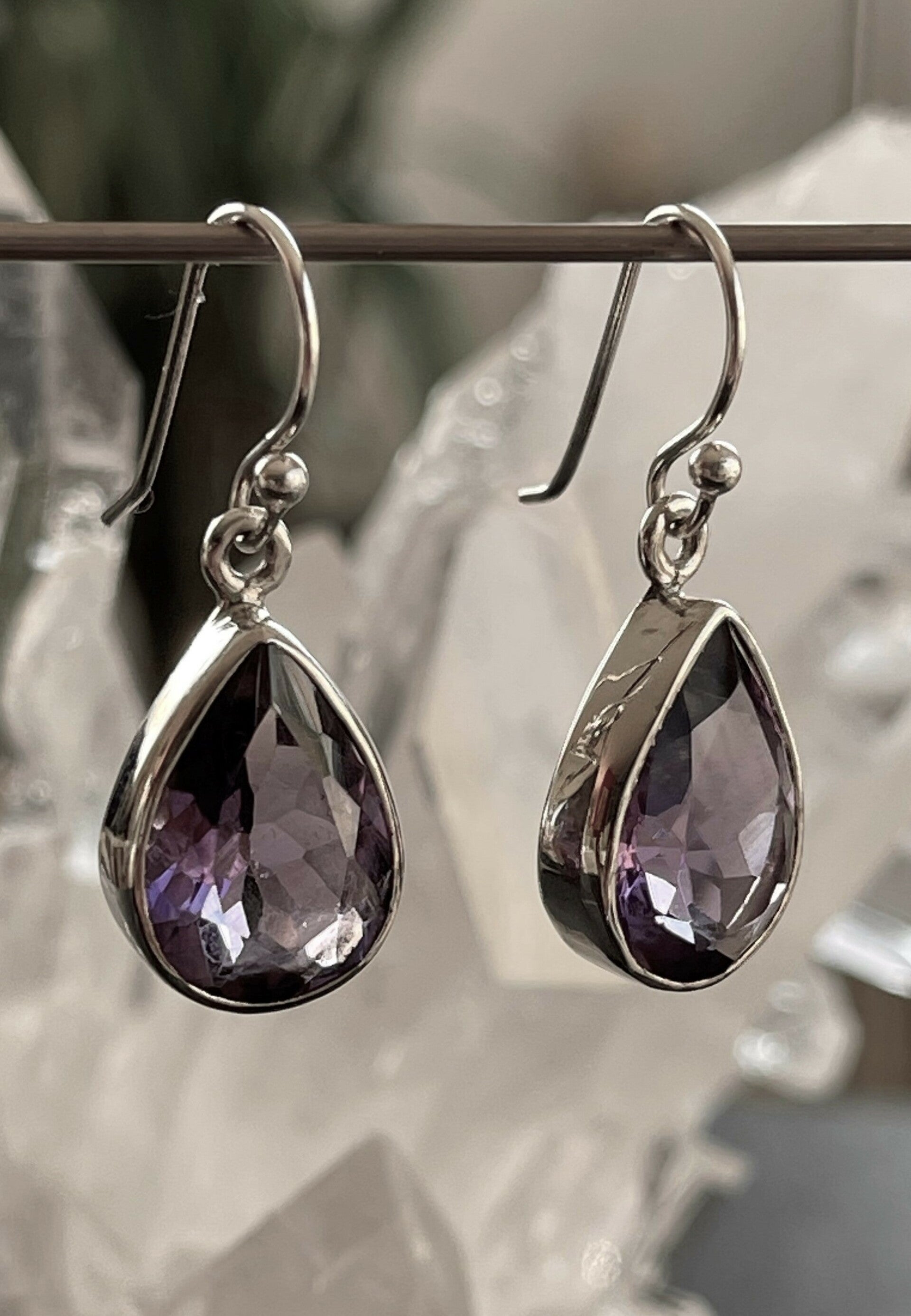 Zilveren oorbellen met Amethist edelstenen facet geslepen druppel