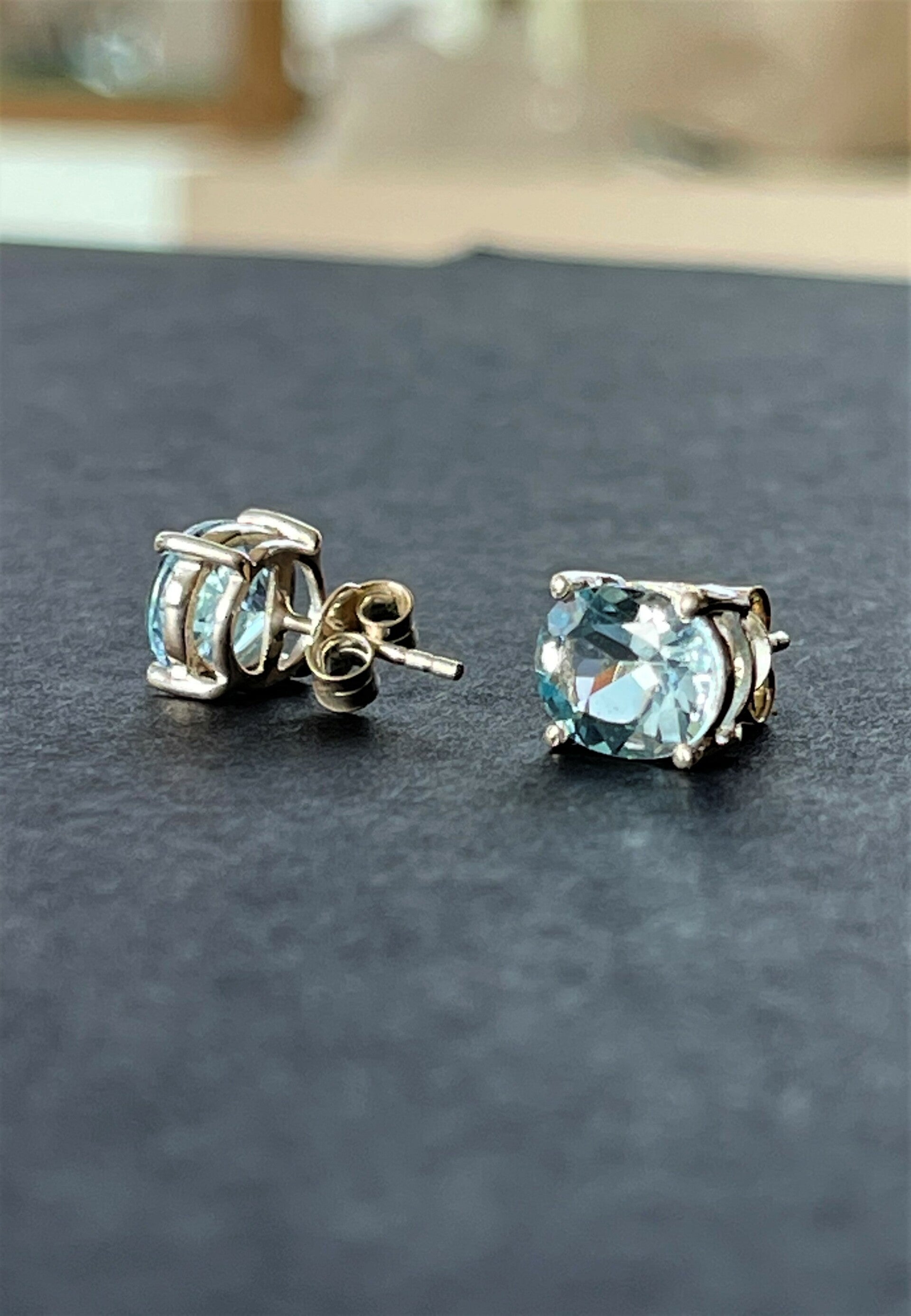 Zilveren oorstekers met blauwe Topaas facet geslepen edelstenen ovaal, groot