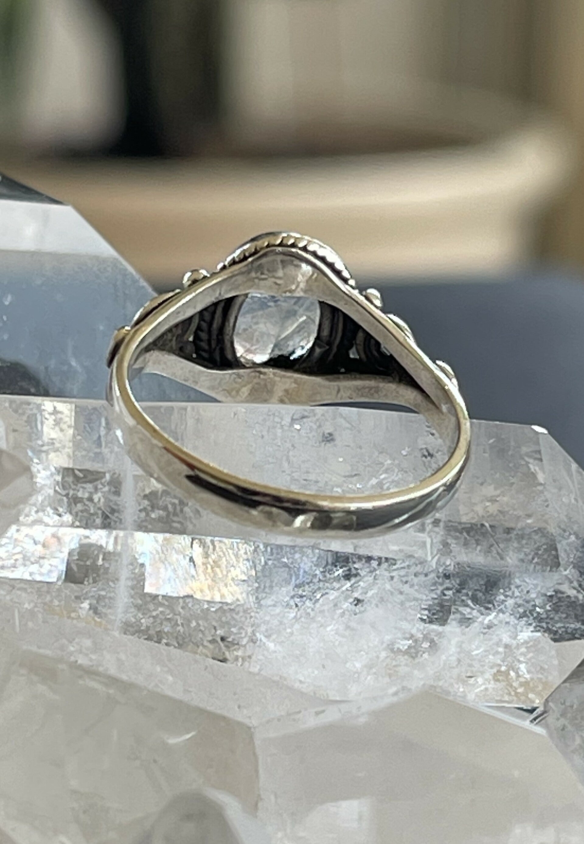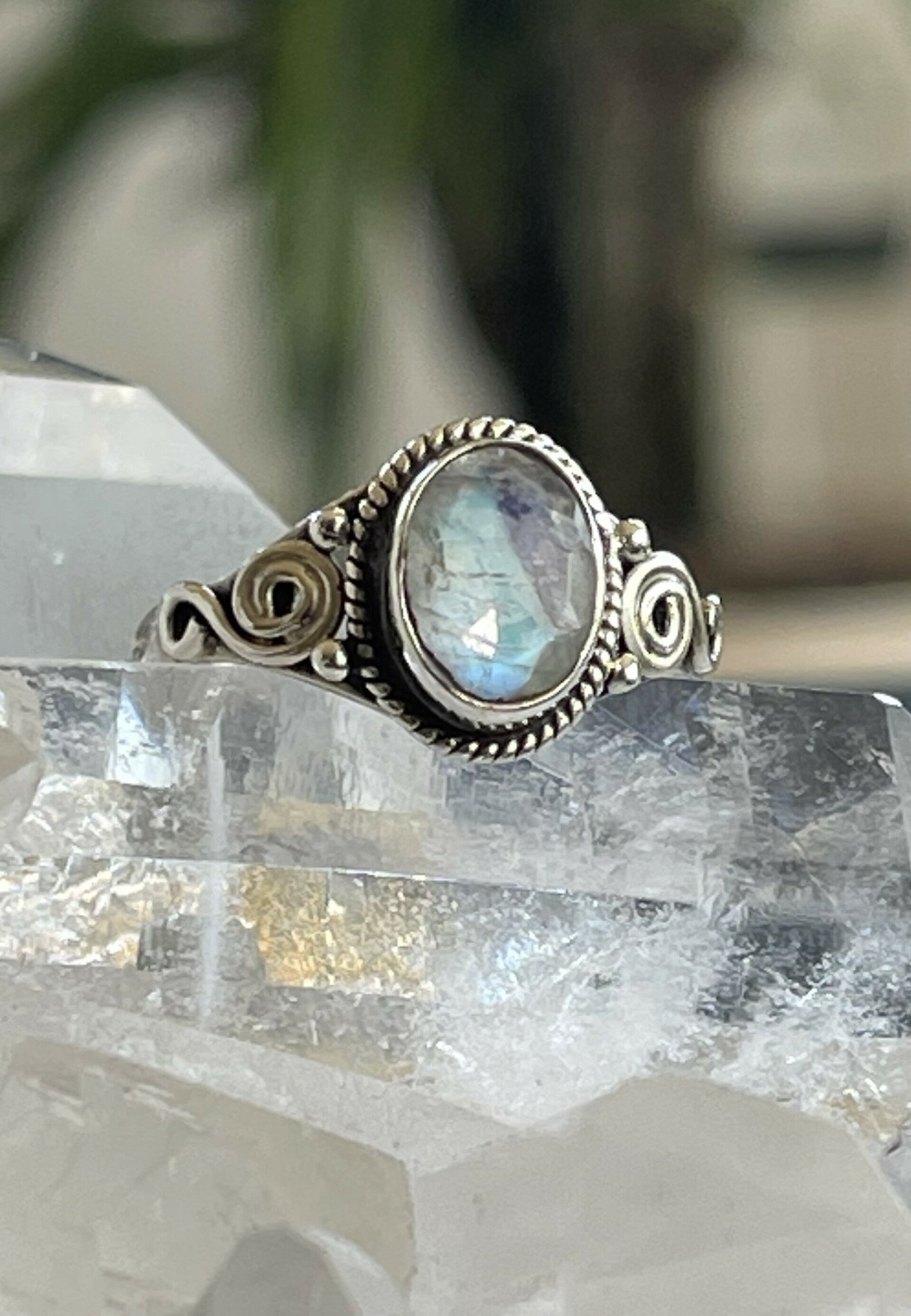 Zilveren ring met Regenboog Maansteen edelsteen facet geslepen ovaal klein