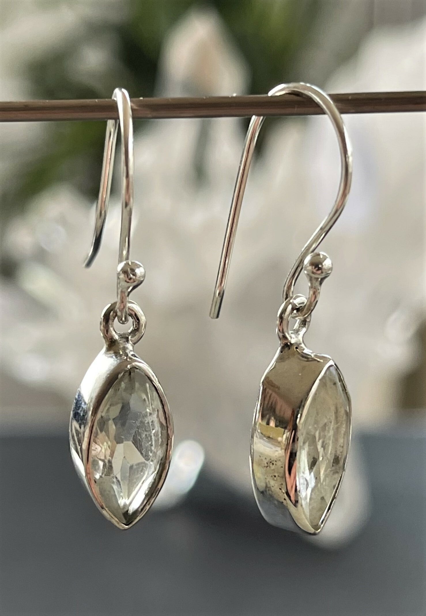 Zilveren oorbellen met Groene Amethist edelstenen facet geslepen markies-vorm