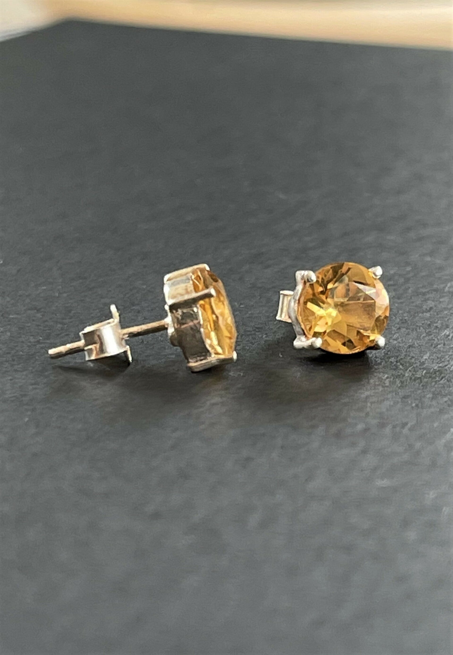 Zilveren oorstekers met Citrien edelstenen facet geslepen rond