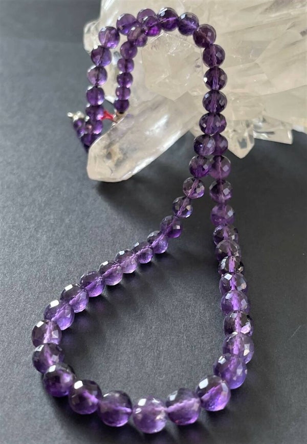 Ketting met Amethist edelstenen facet geslepen rond en zilveren sluiting