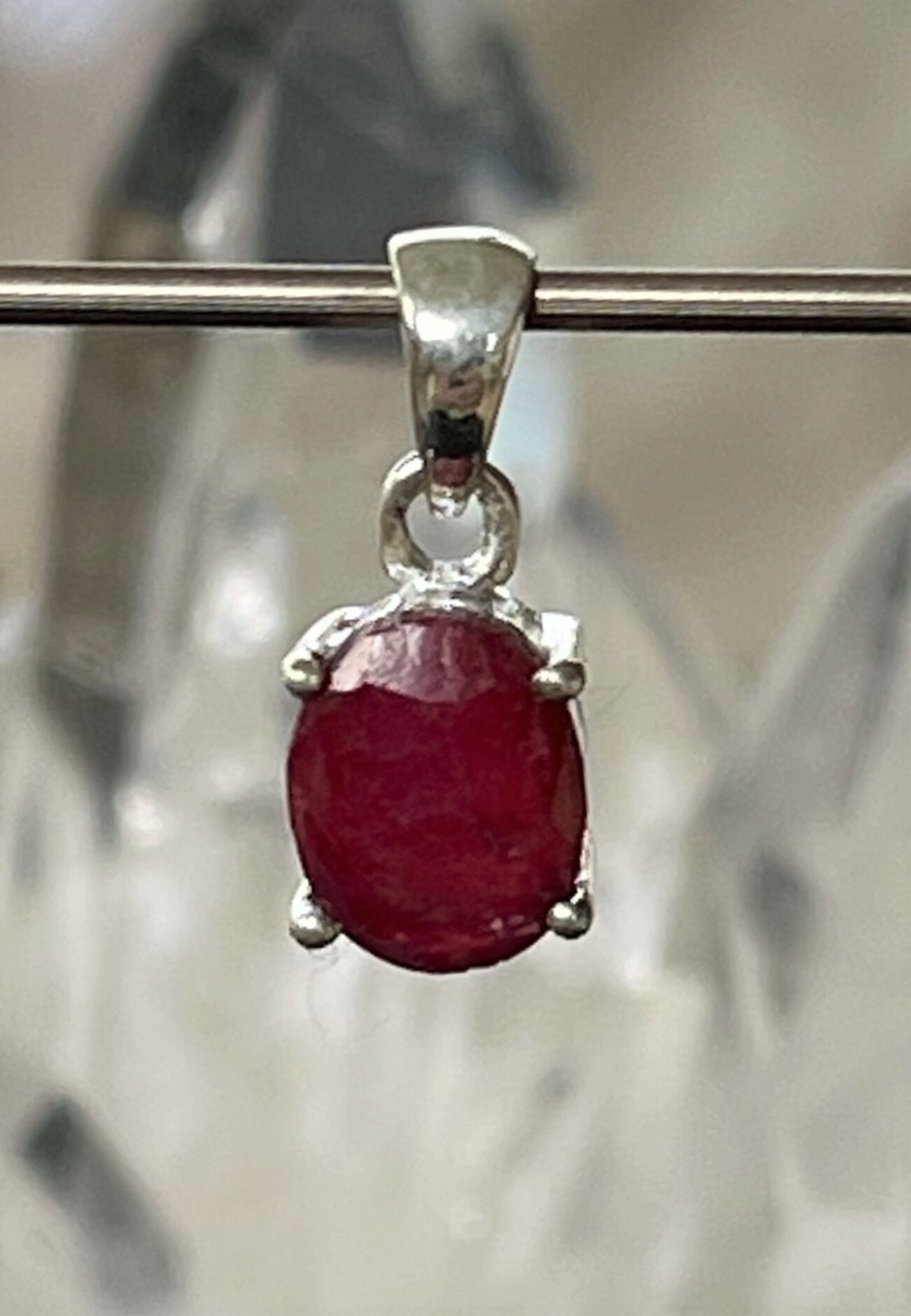 Zilveren hangertje met Robijn edelsteen facet geslepen ovaal, klein