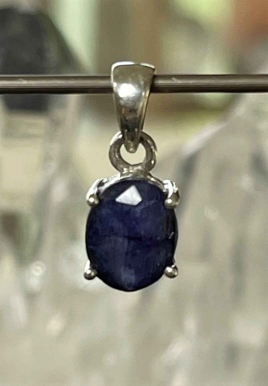 Zilveren hangertje met Saffier edelsteen facet geslepen ovaal, klein