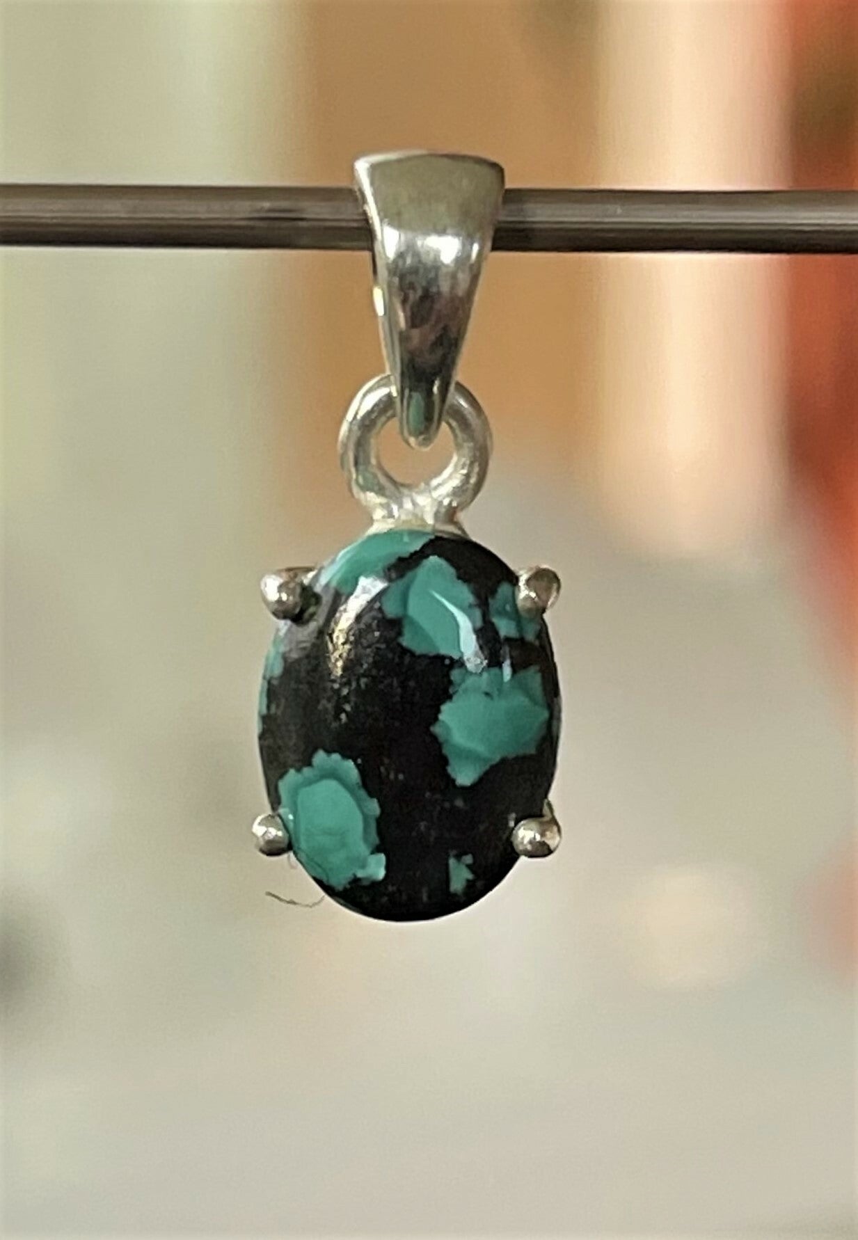 Zilveren hangertje met Turkoois edelsteen cabochon ovaal, klein