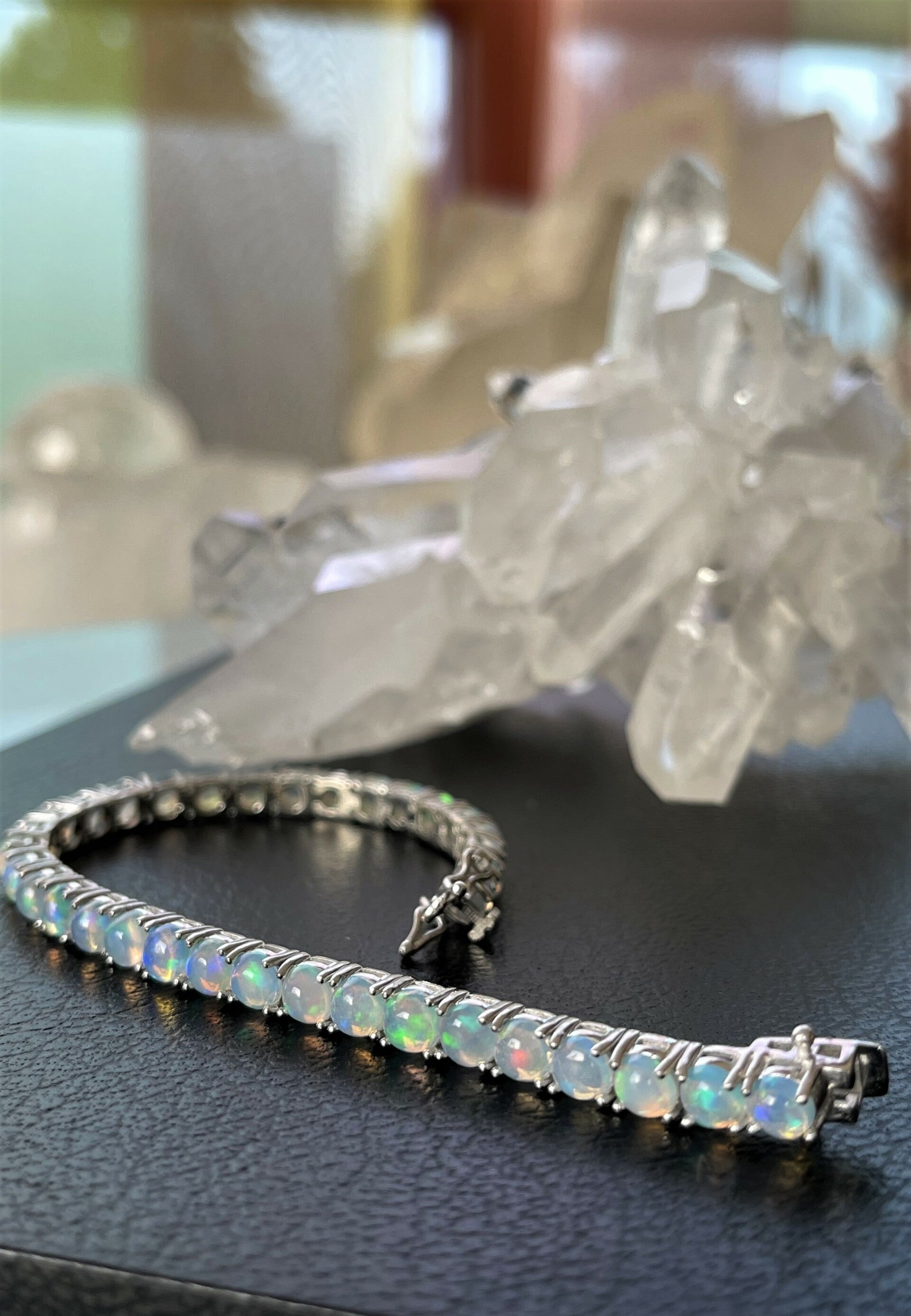 Zilveren armband met Ethiopische Opaal edelstenen cabochon rond, met veilige sluiting.