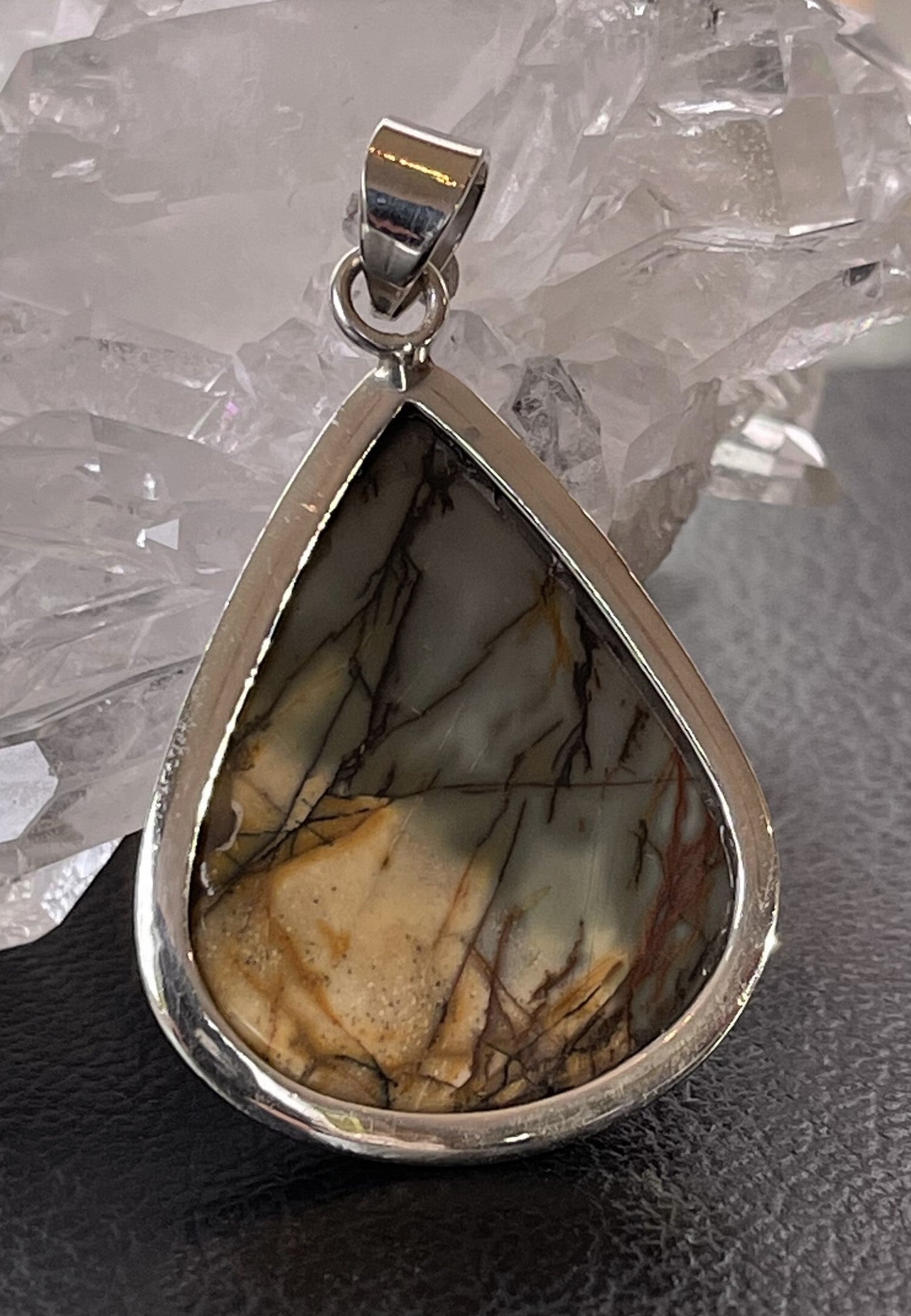 Zilveren hangertje met Jaspis edelsteen, cabochon druppel, medium
