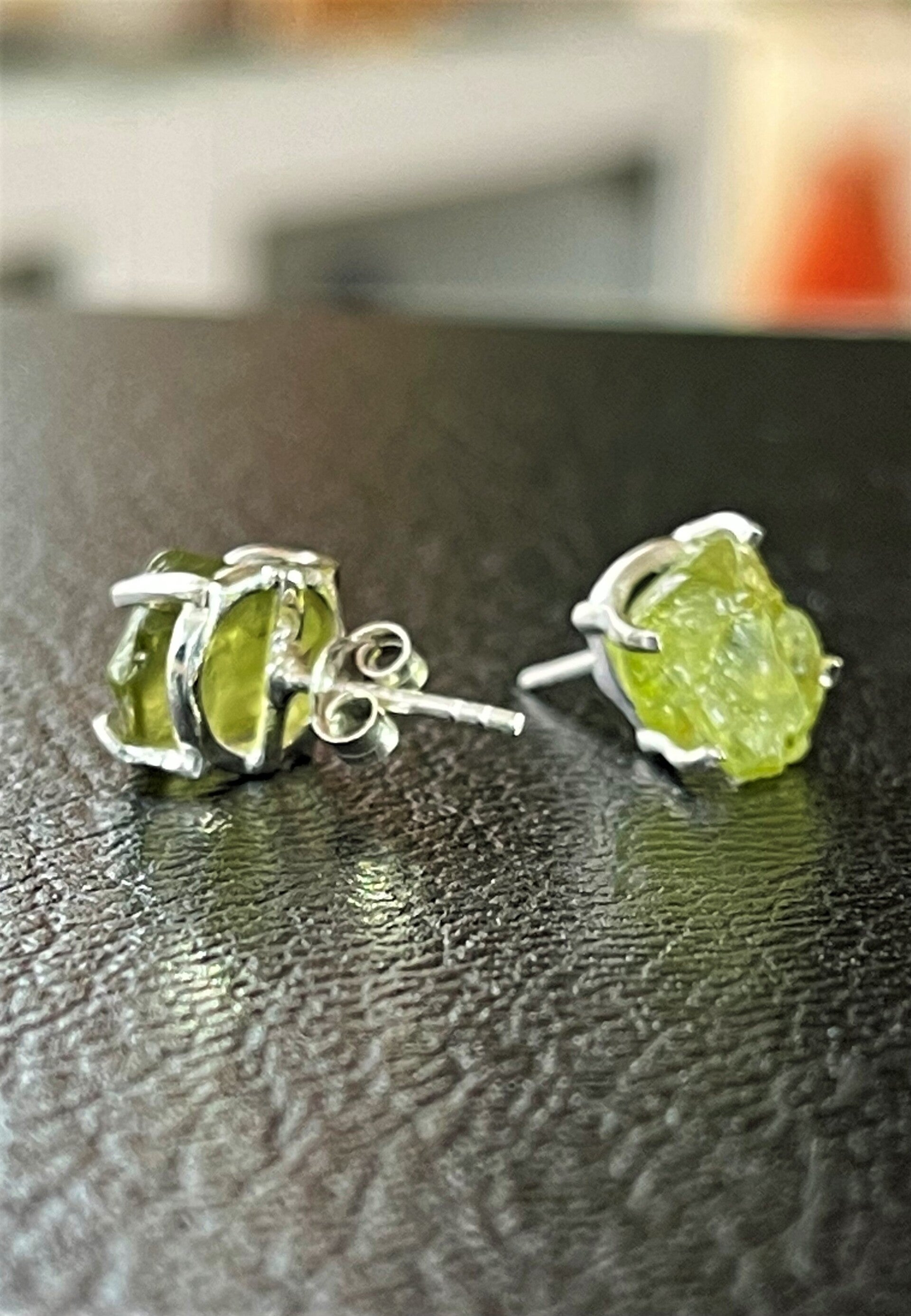 Zilveren oorstekers met ruwe Peridoot edelstenen