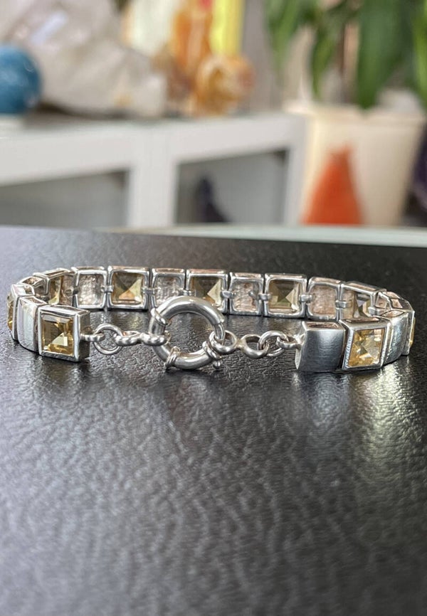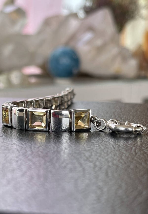 Zilveren armband met Citrien edelstenen facet geslepen rechthoekig en vierkant