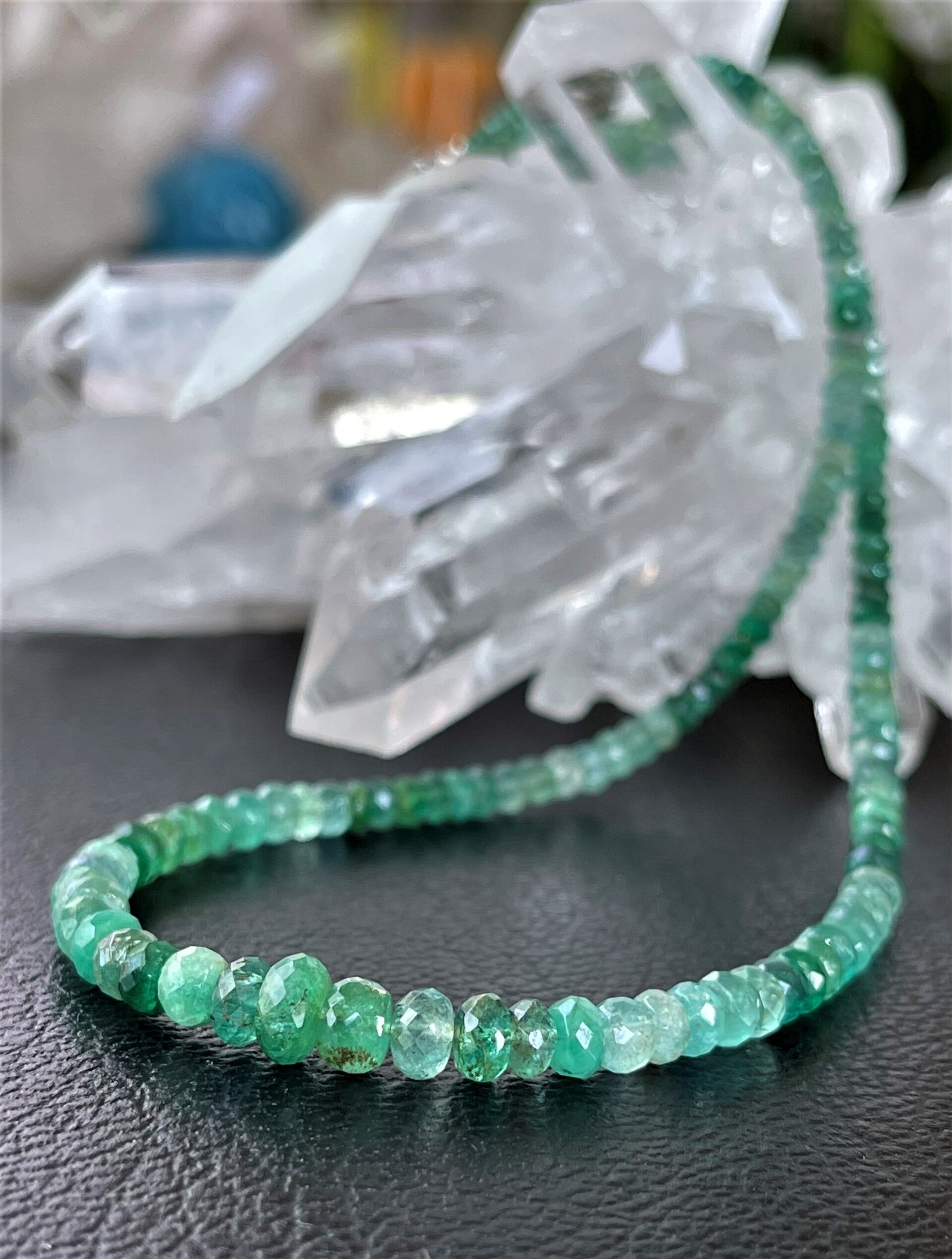 Ketting met natuurlijke, onbehandelde Smaragd edelstenen facet geslepen en zilveren sluiting.