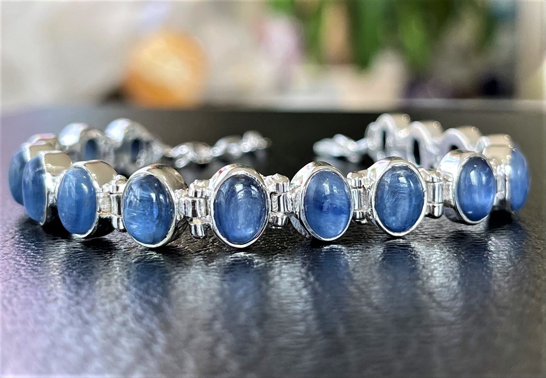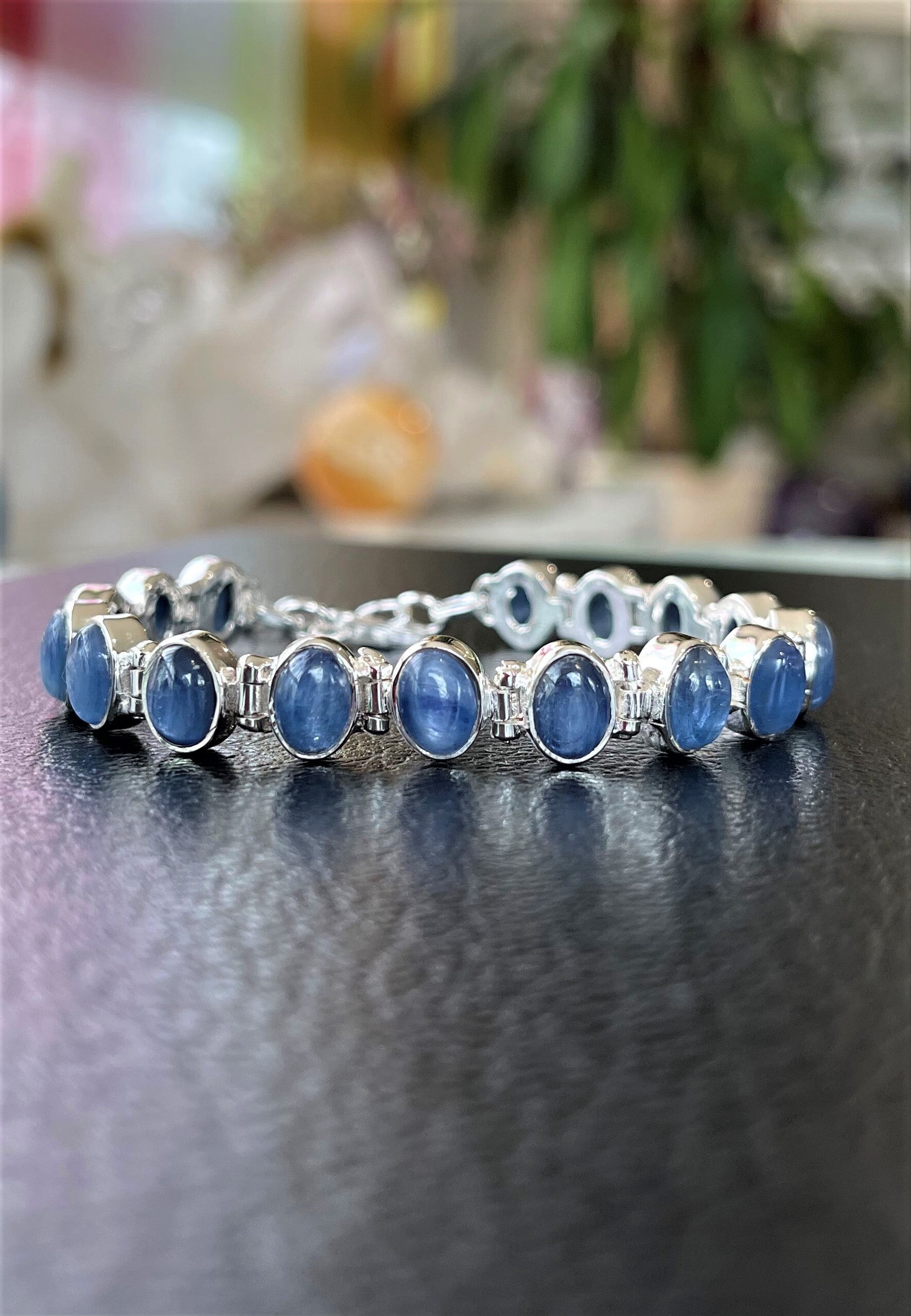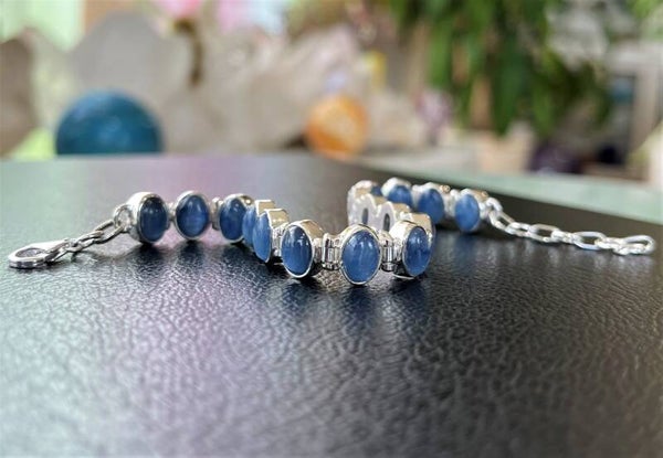 Zilveren armband met blauwe Kyaniet edelstenen cabochon ovaal