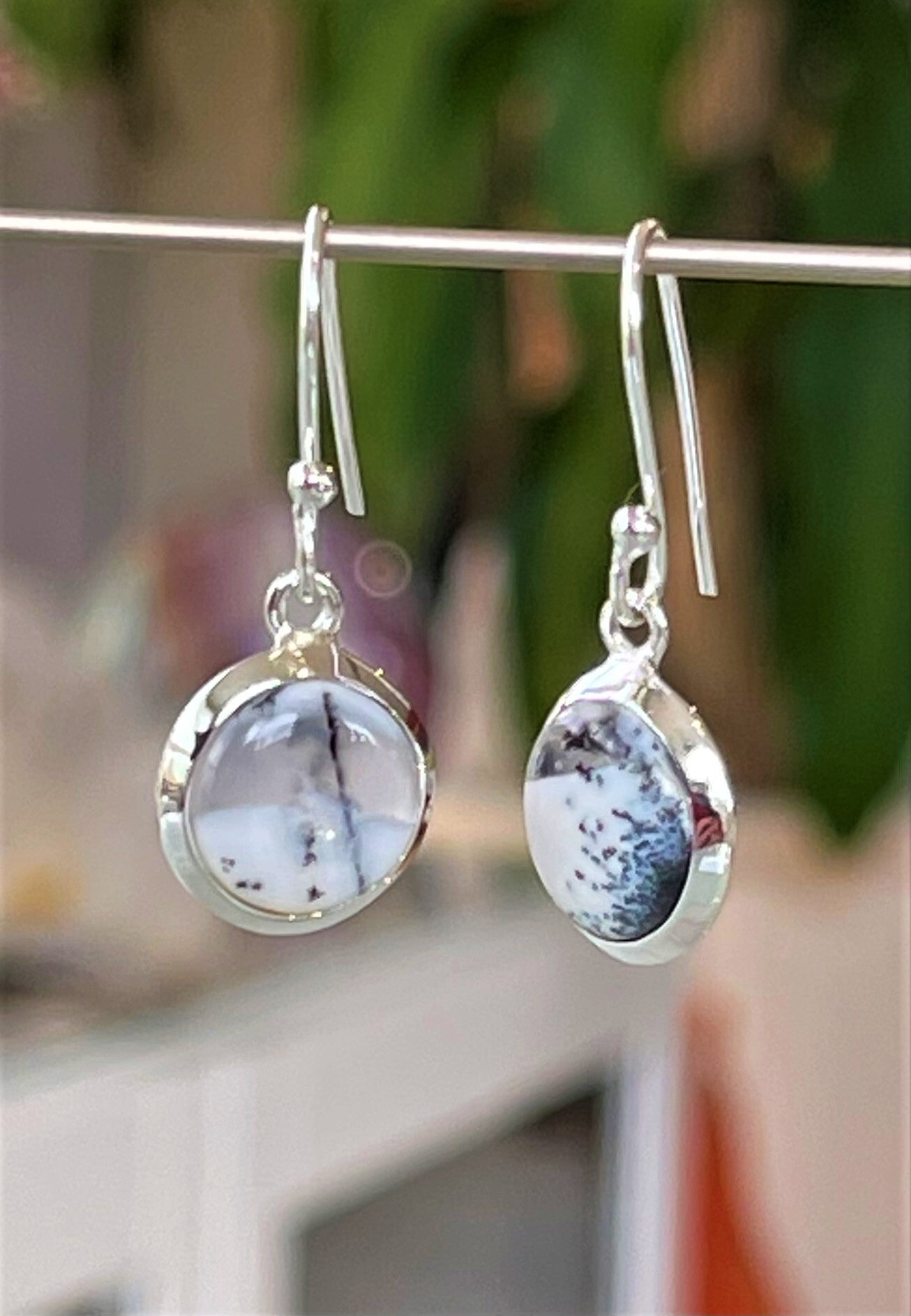 Zilveren oorbellen met Dendriet Agaat edelstenen cabochon rond