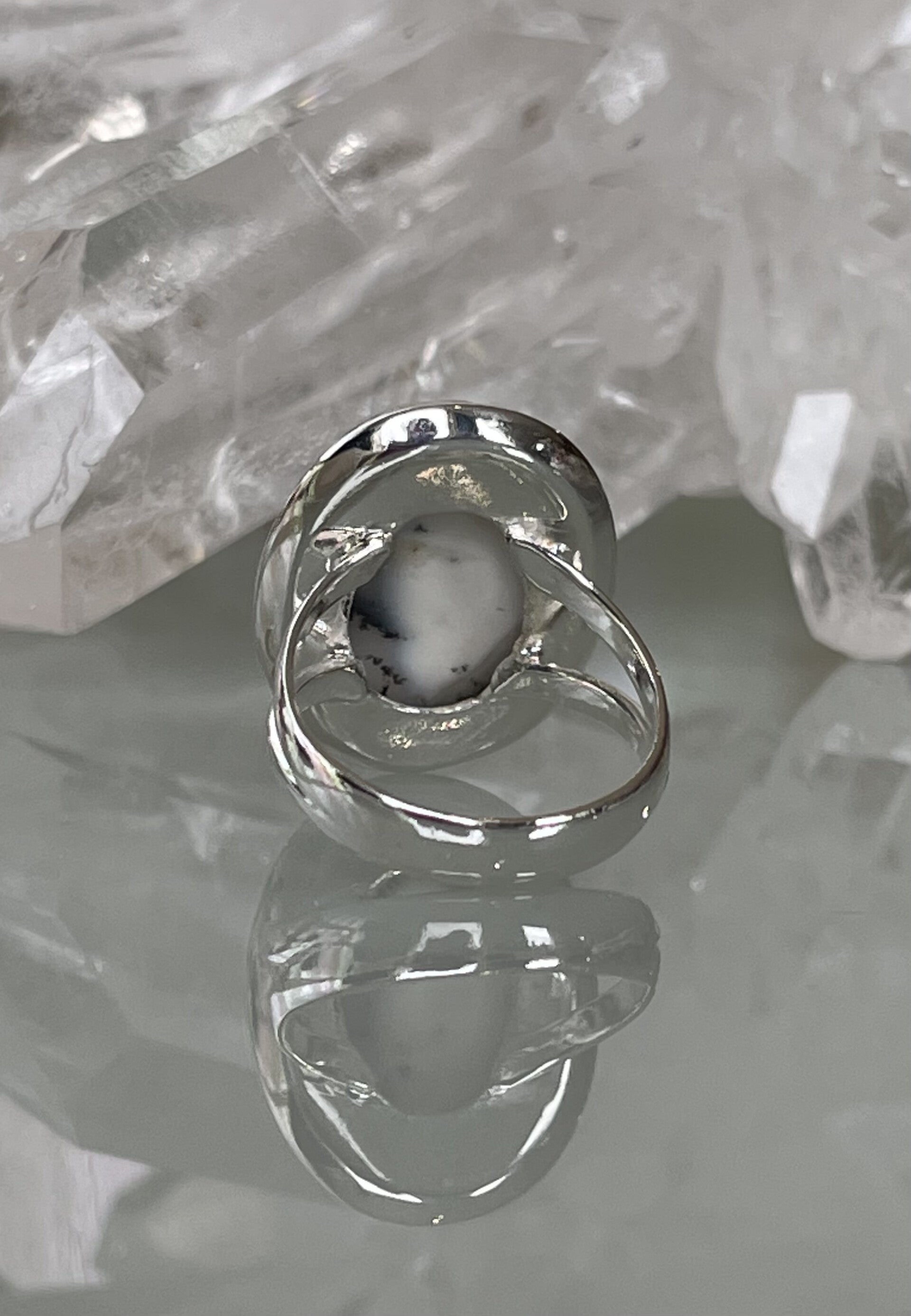 Dendriet Agaat ring cabochon ovaal, maat 16,6