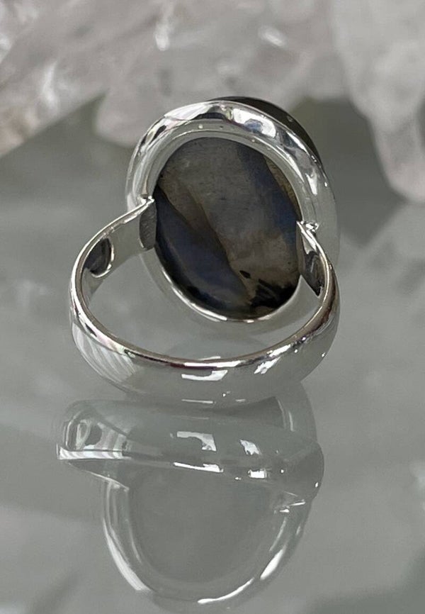 Zilveren ring met Labradoriet edelsteen cabochon ovaal