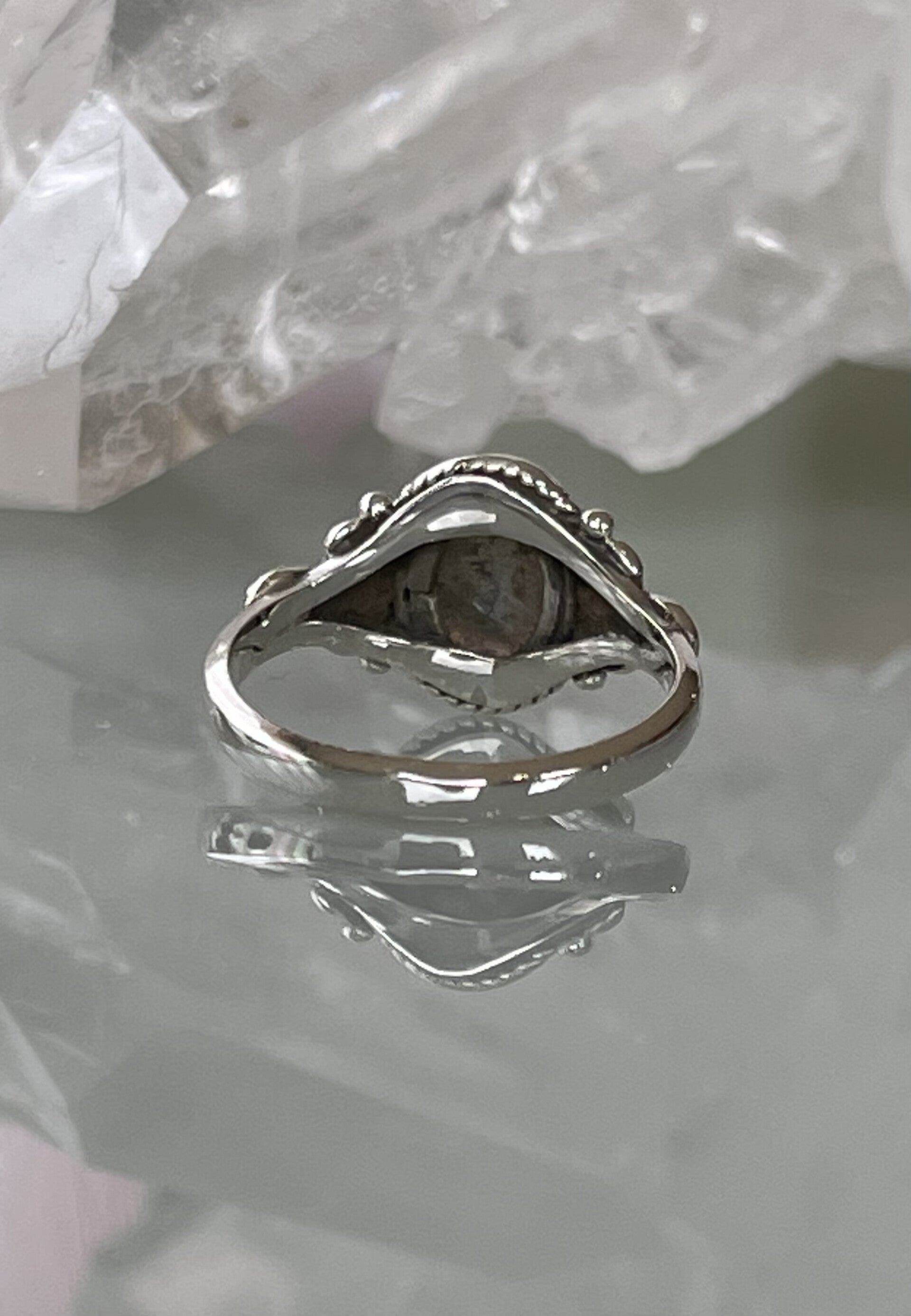 Zilveren ring met Labradoriet edelsteen facet geslepen ovaal, klein