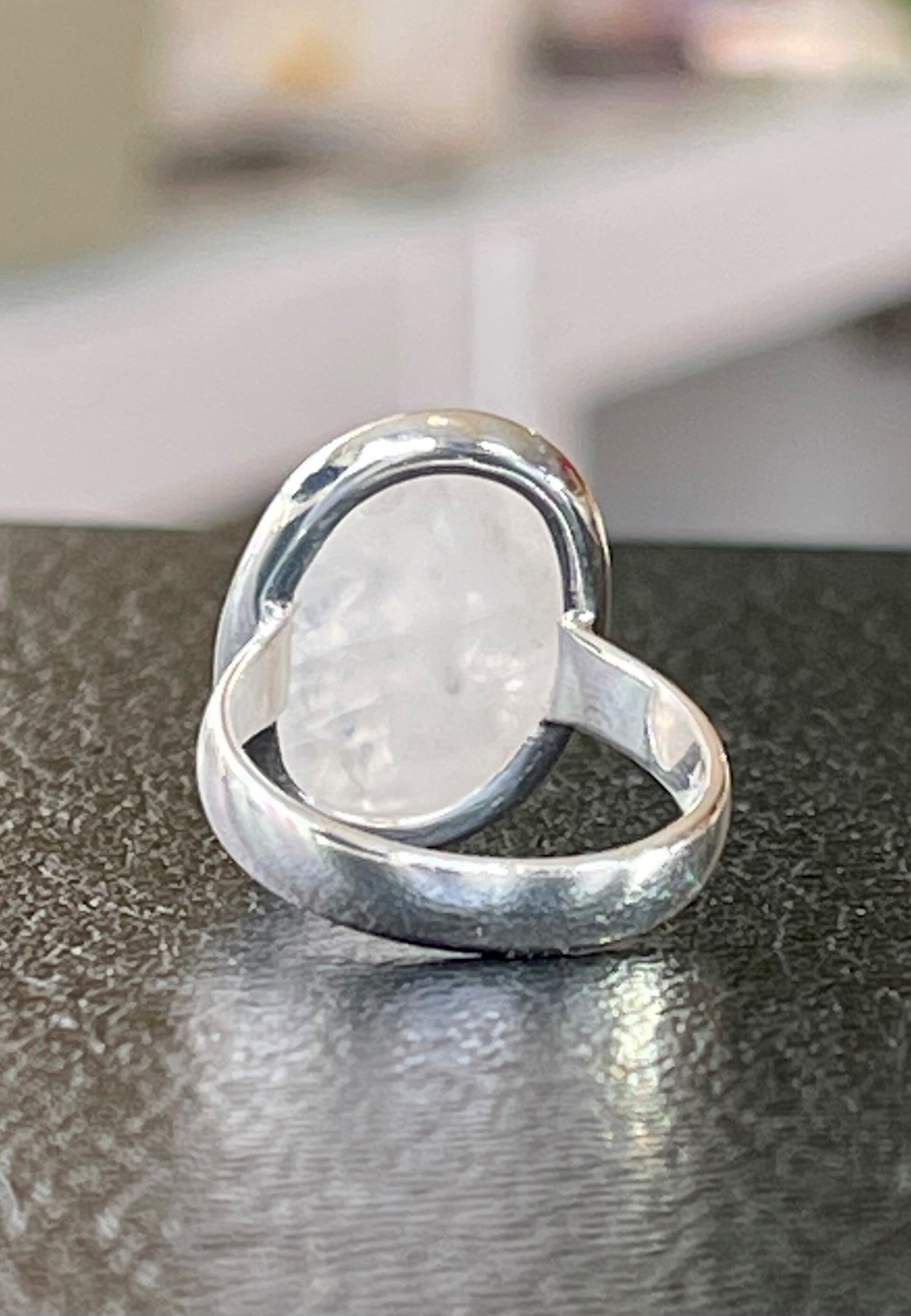 Regenboog Maansteen ring cabochon ovaal, maat 18