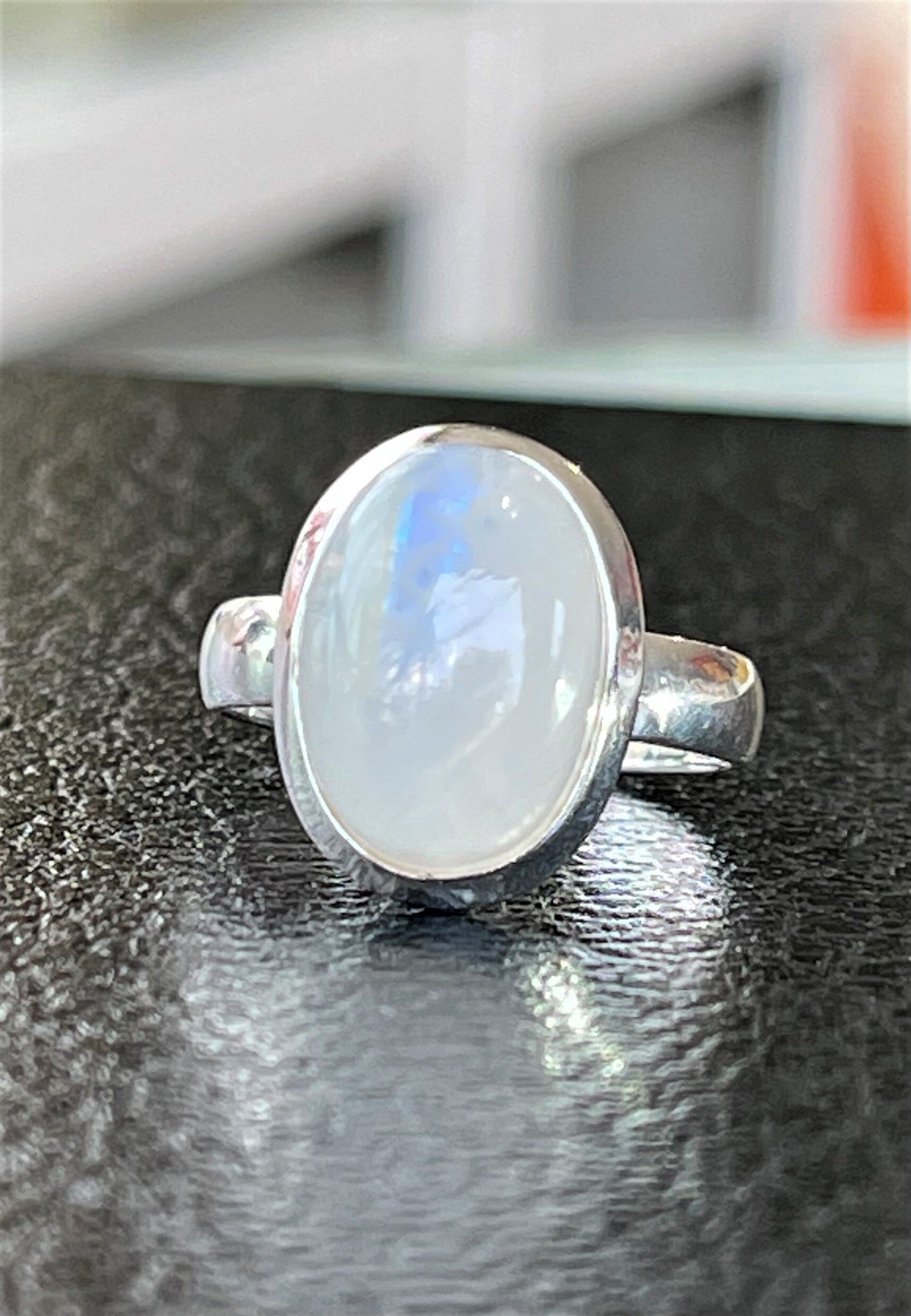 Zilveren ring met Regenboog Maansteen edelsteen cabochon ovaal