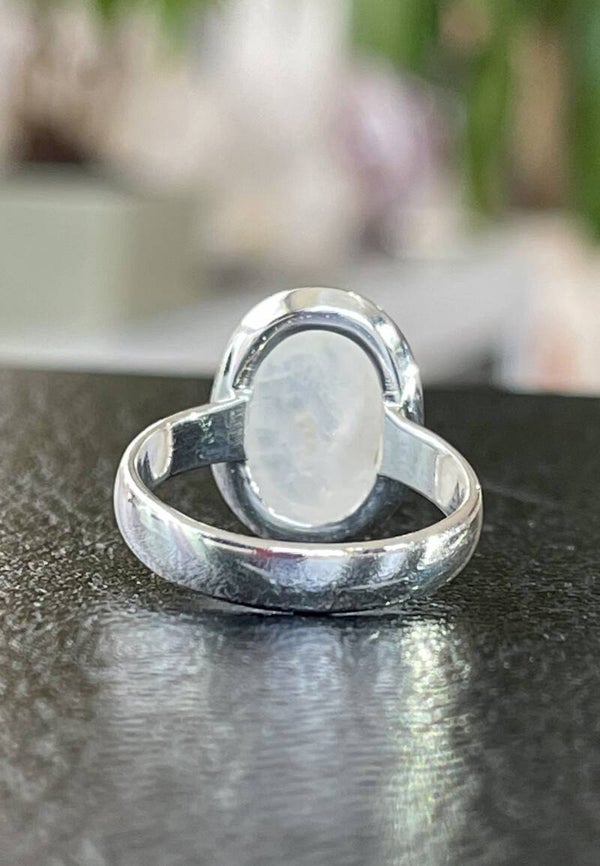 Regenboog Maansteen ring cabochon ovaal, maat 17,6