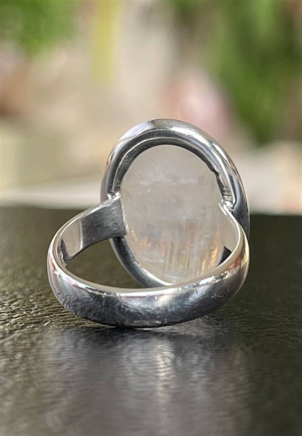 Zilveren ring met Regenboog Maansteen edelsteen cabochon ovaal