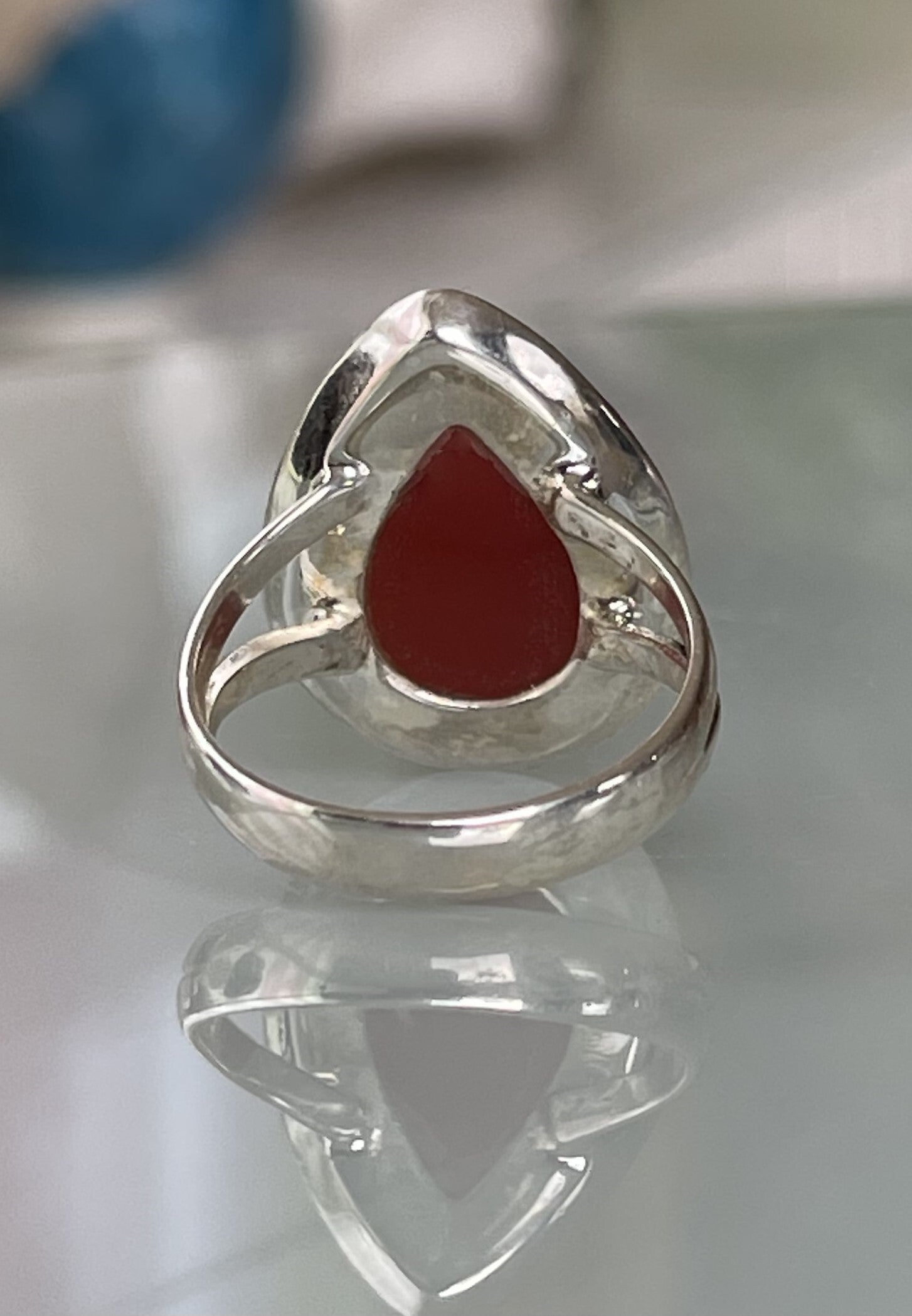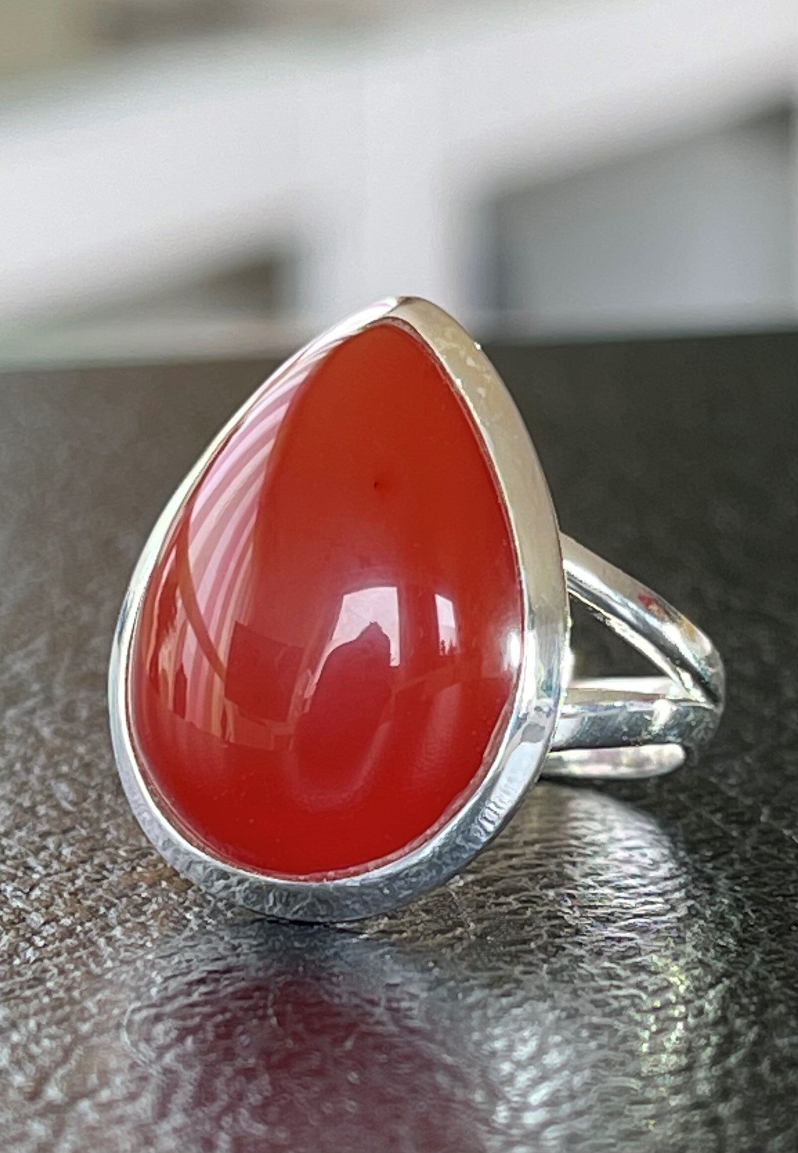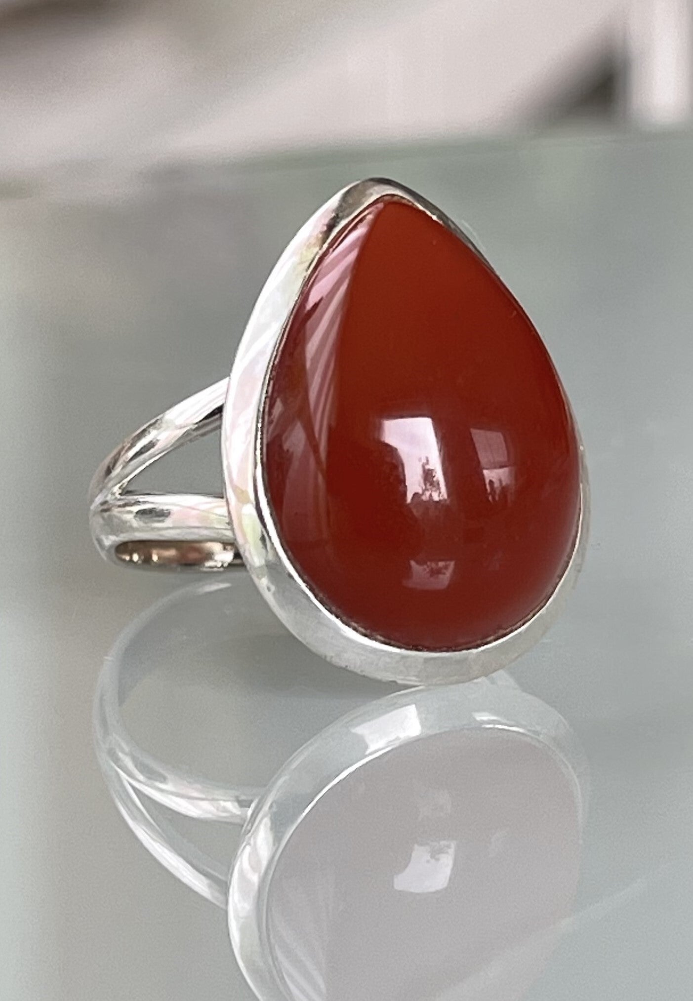 Zilveren ring met Carneool edelsteen cabochon druppel