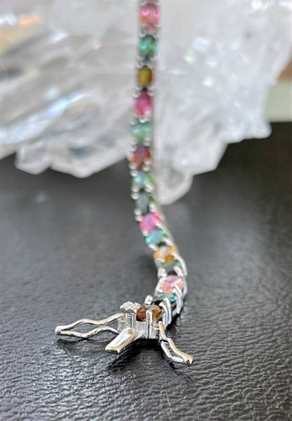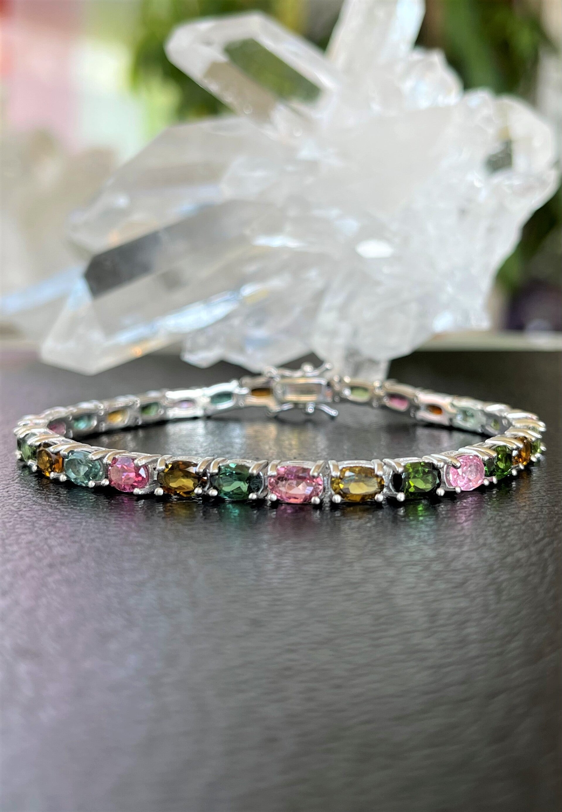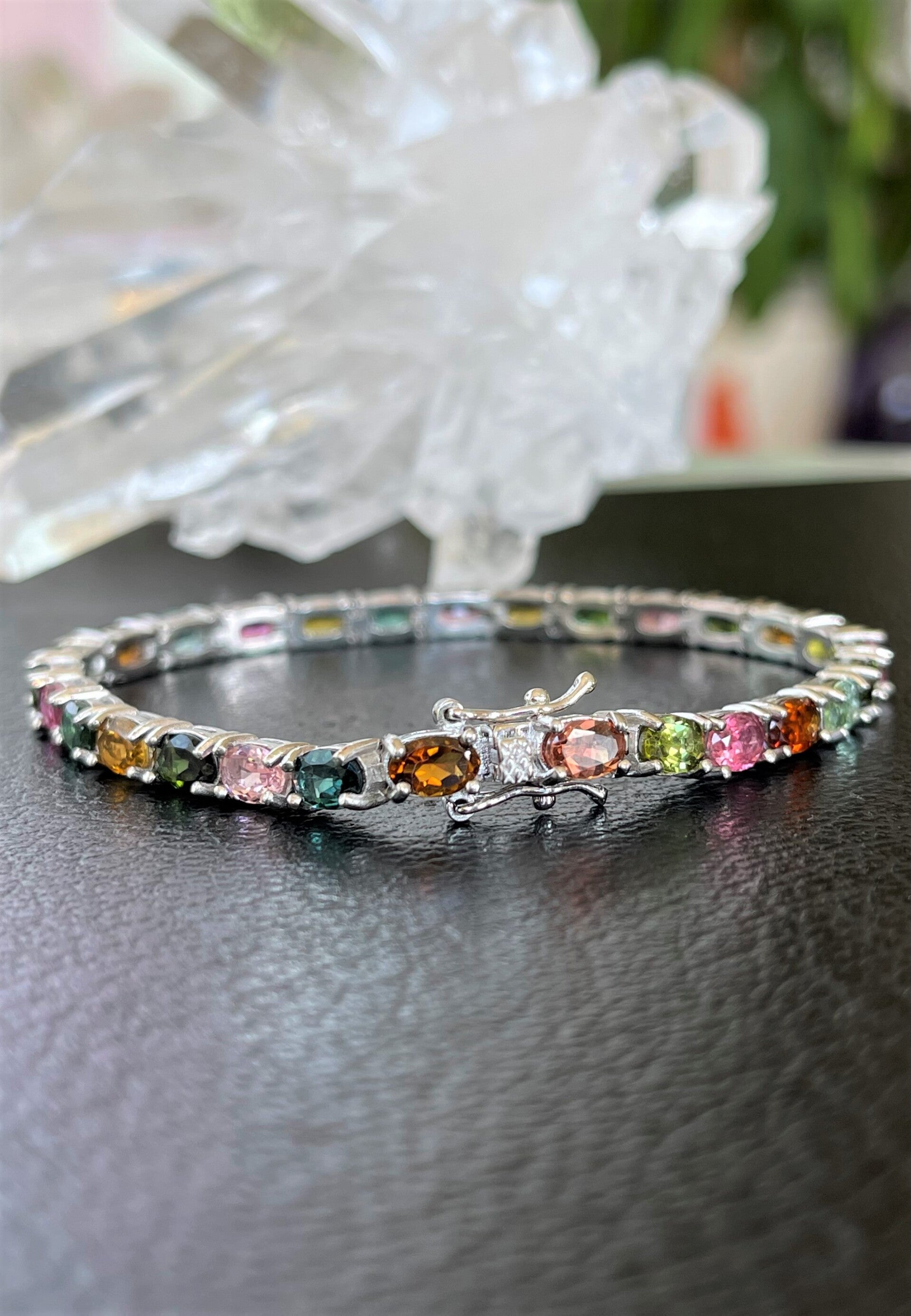 Zilveren armband met Toermalijn edelstenen facet geslepen ovaal, met veilige sluiting
