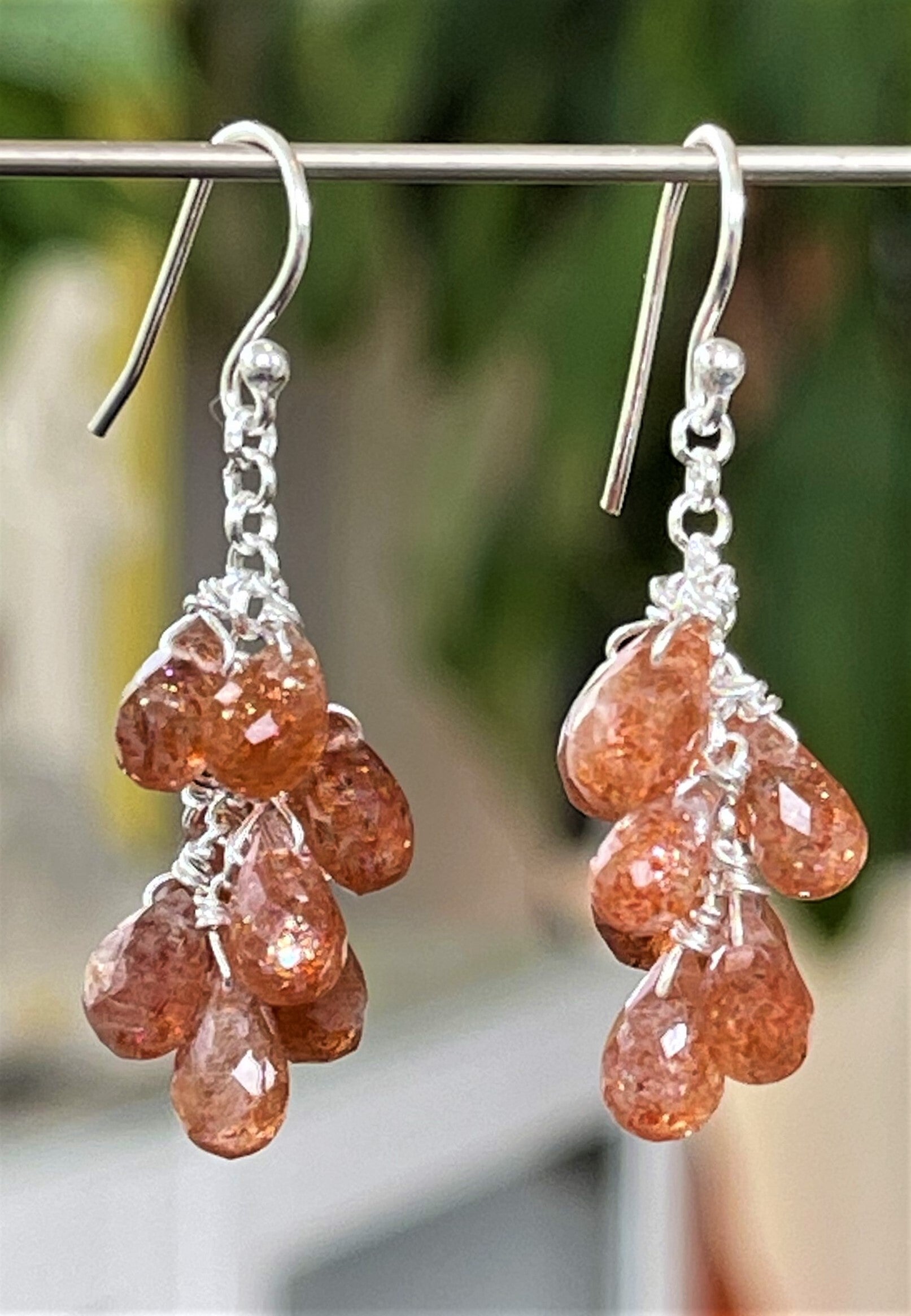 Zonnesteen oorbellen facet geslepen druppel in trosje