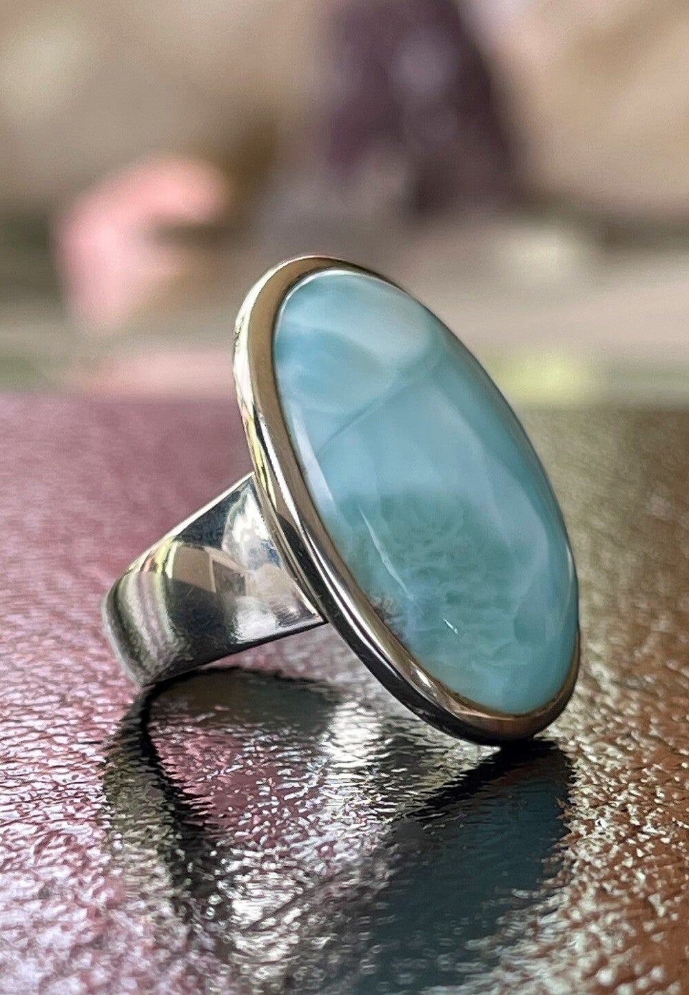 Zilveren ring met Larimar edelsteen cabochon ovaal